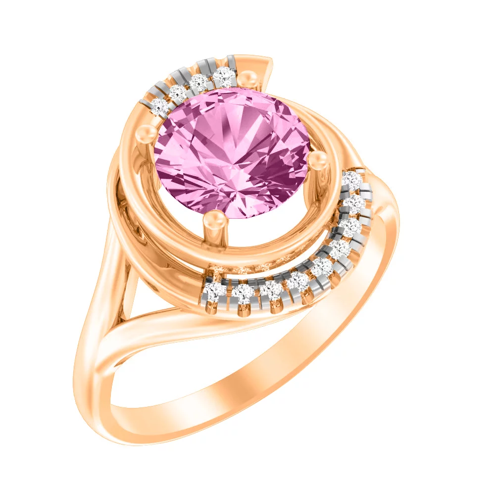 Кольцо из красного золота с кварцем и фианитами - 1516877