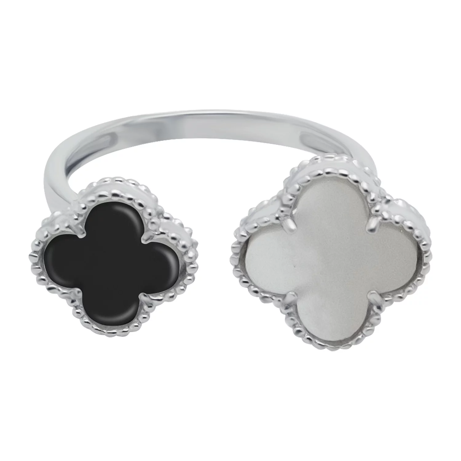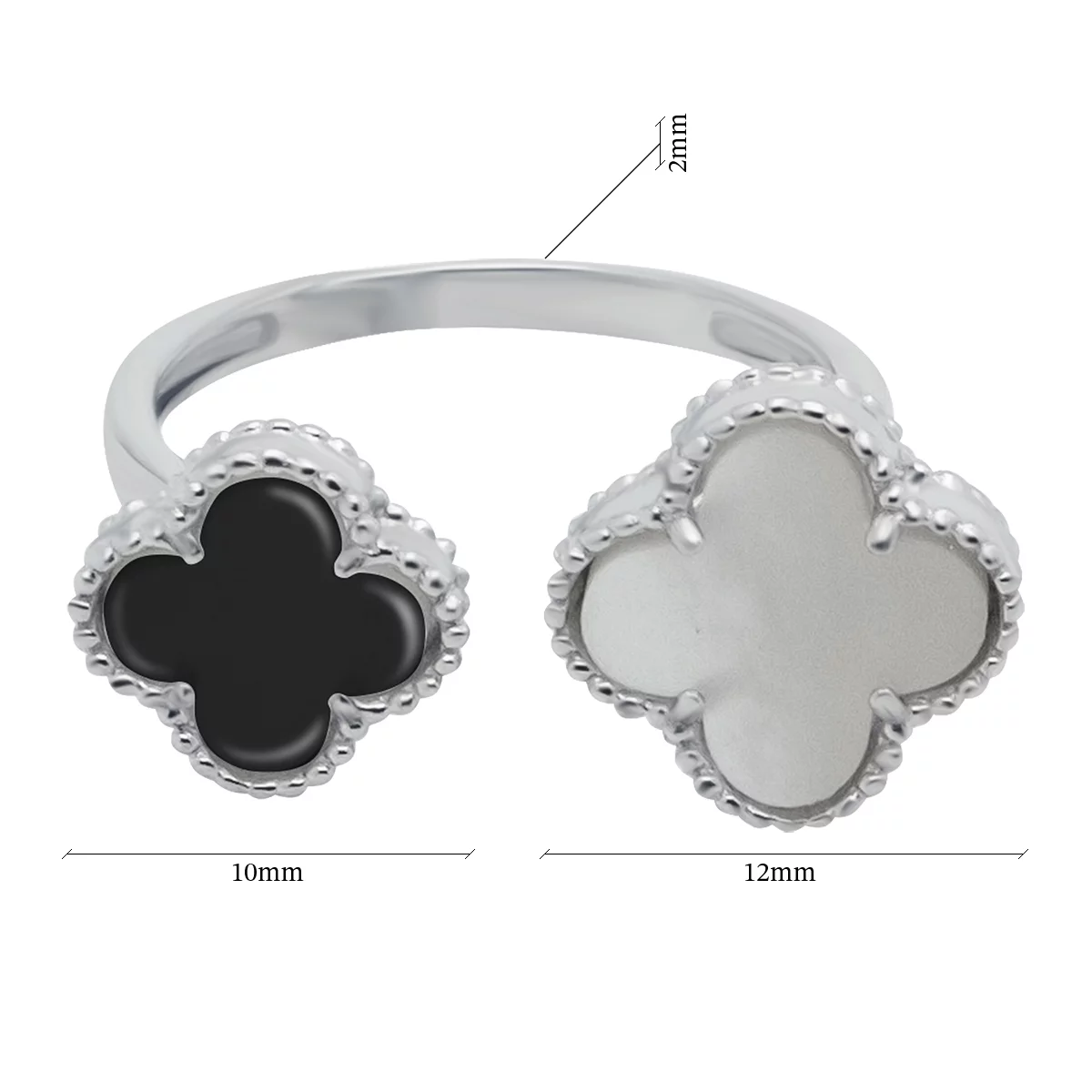 Кольцо незамкнутое из белого золота с перламутром и агатом "Клевер" - 962788