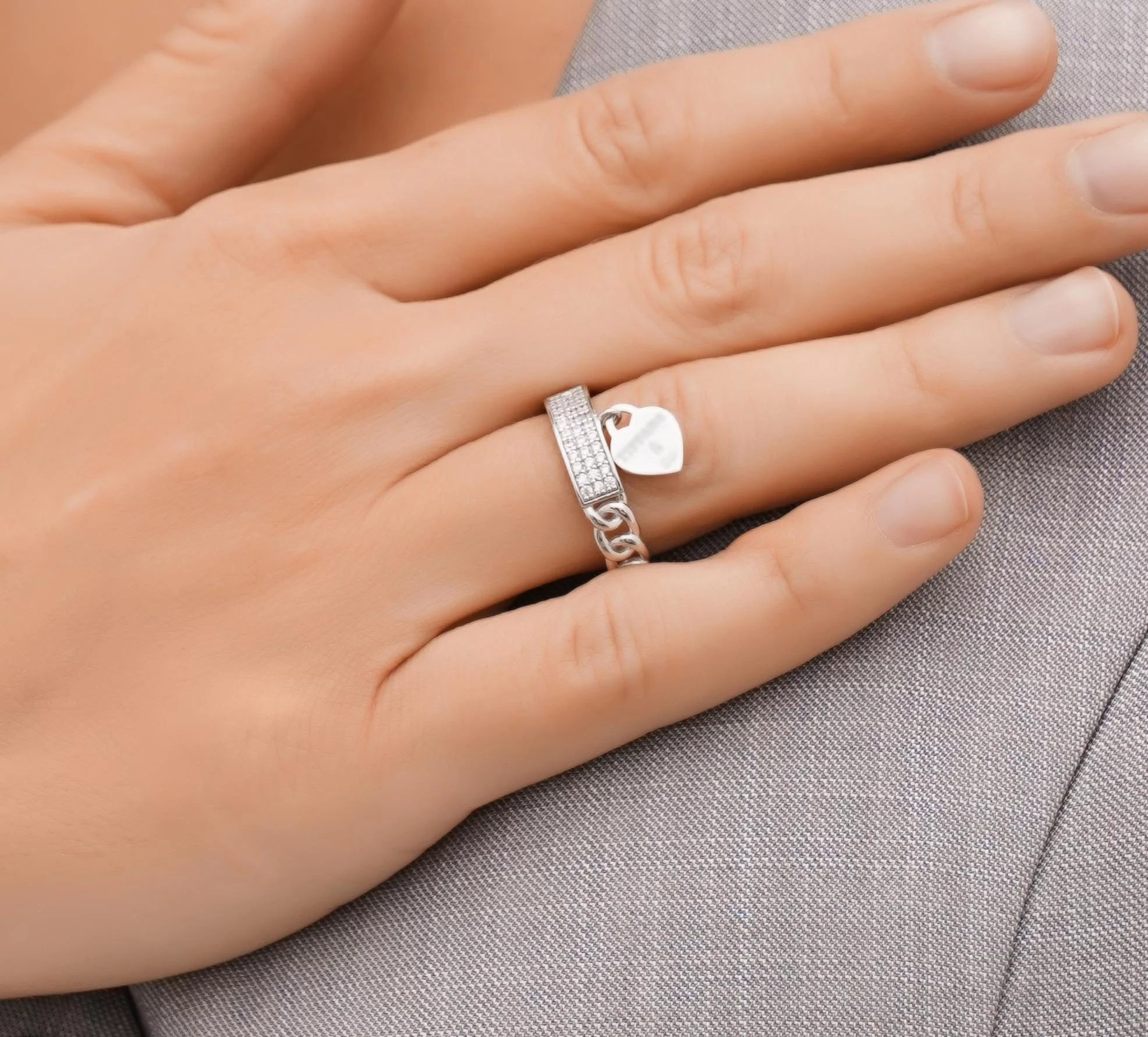 Кольцо с "Геометричным вырезом" из белого золота с фианитами - 1519950