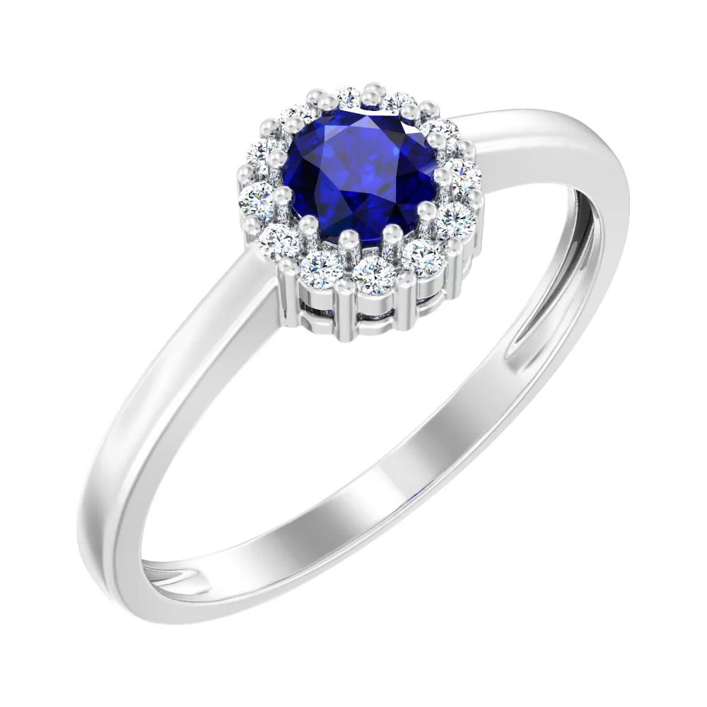 Кольцо из белого золота с сапфиром и бриллиантом - 1514009