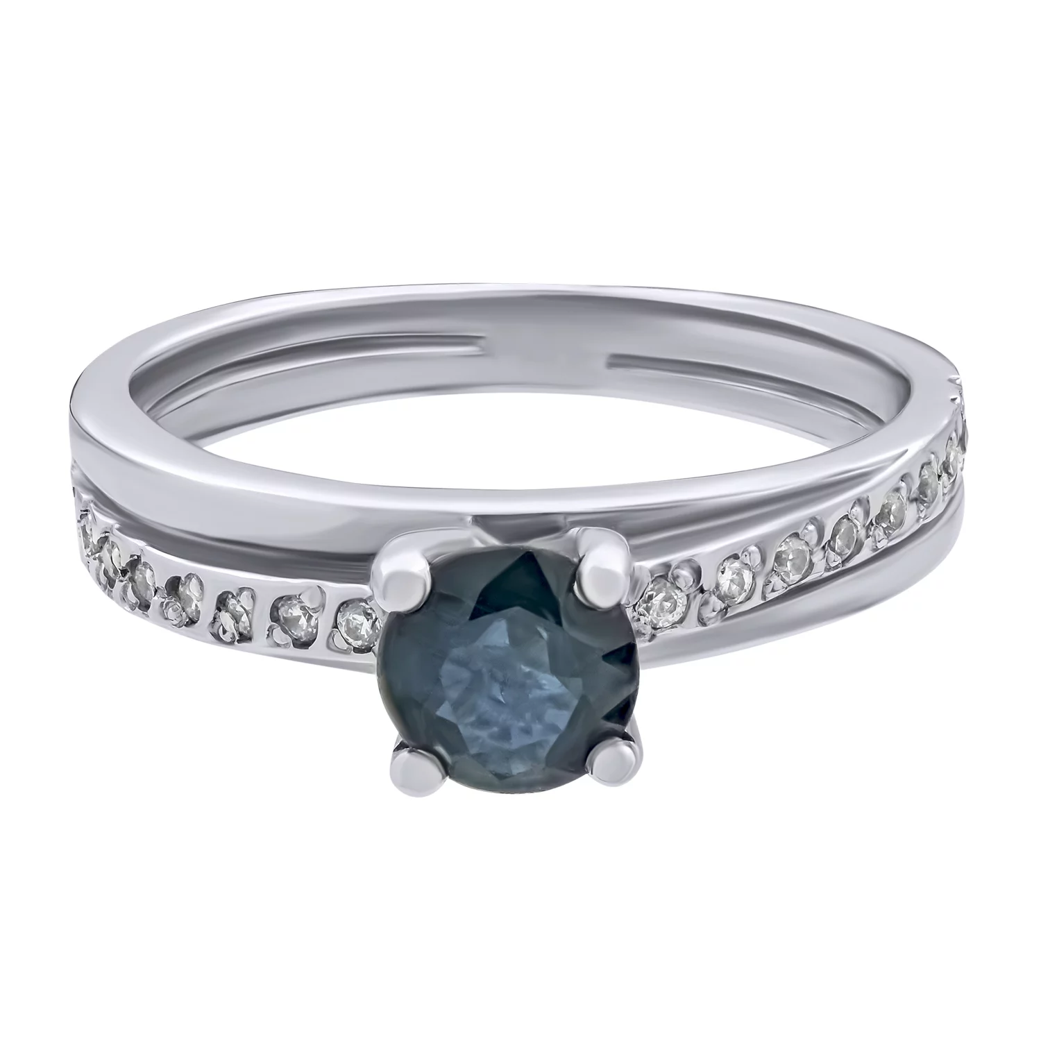 Кольцо из белого золота с сапфиром и фианитами - 512254