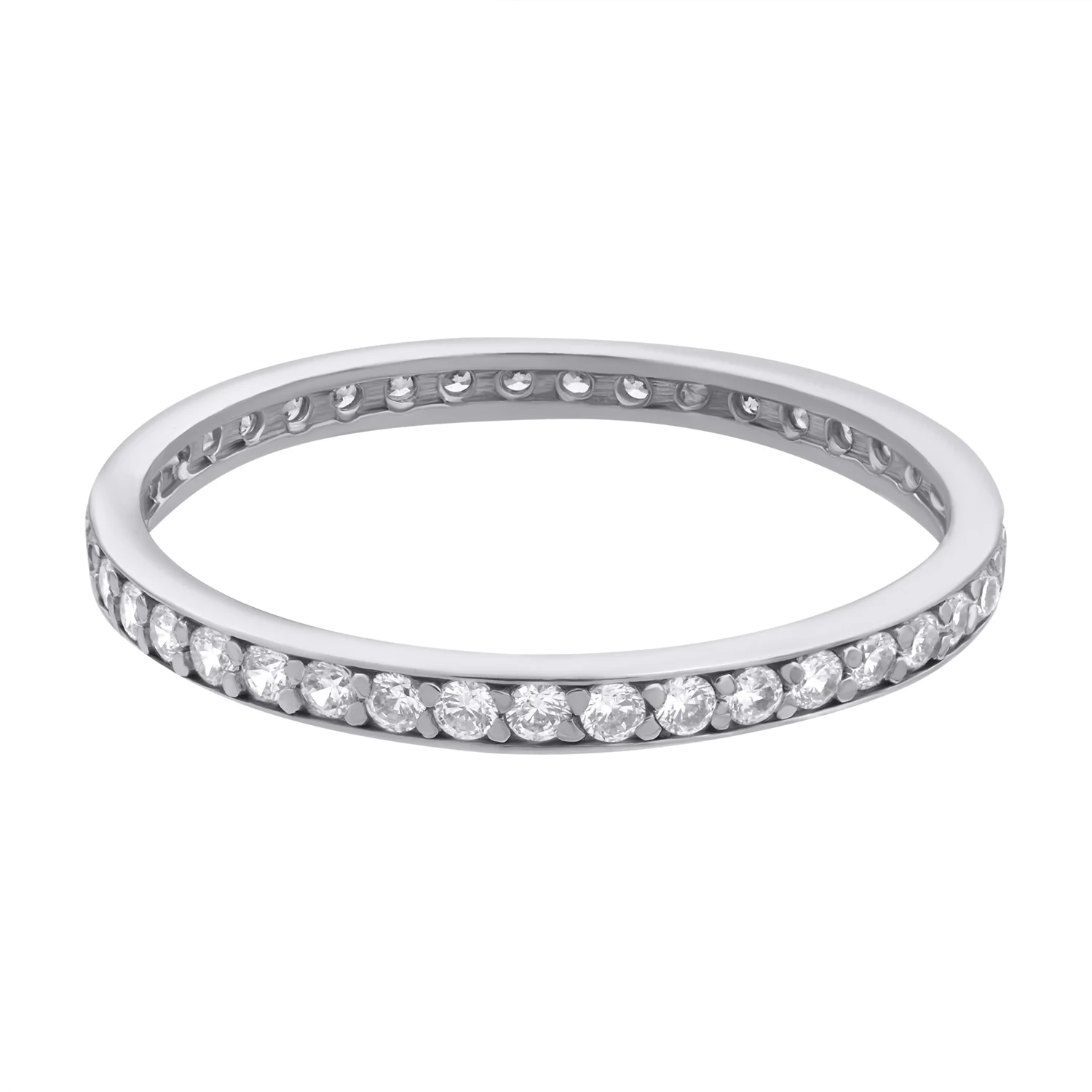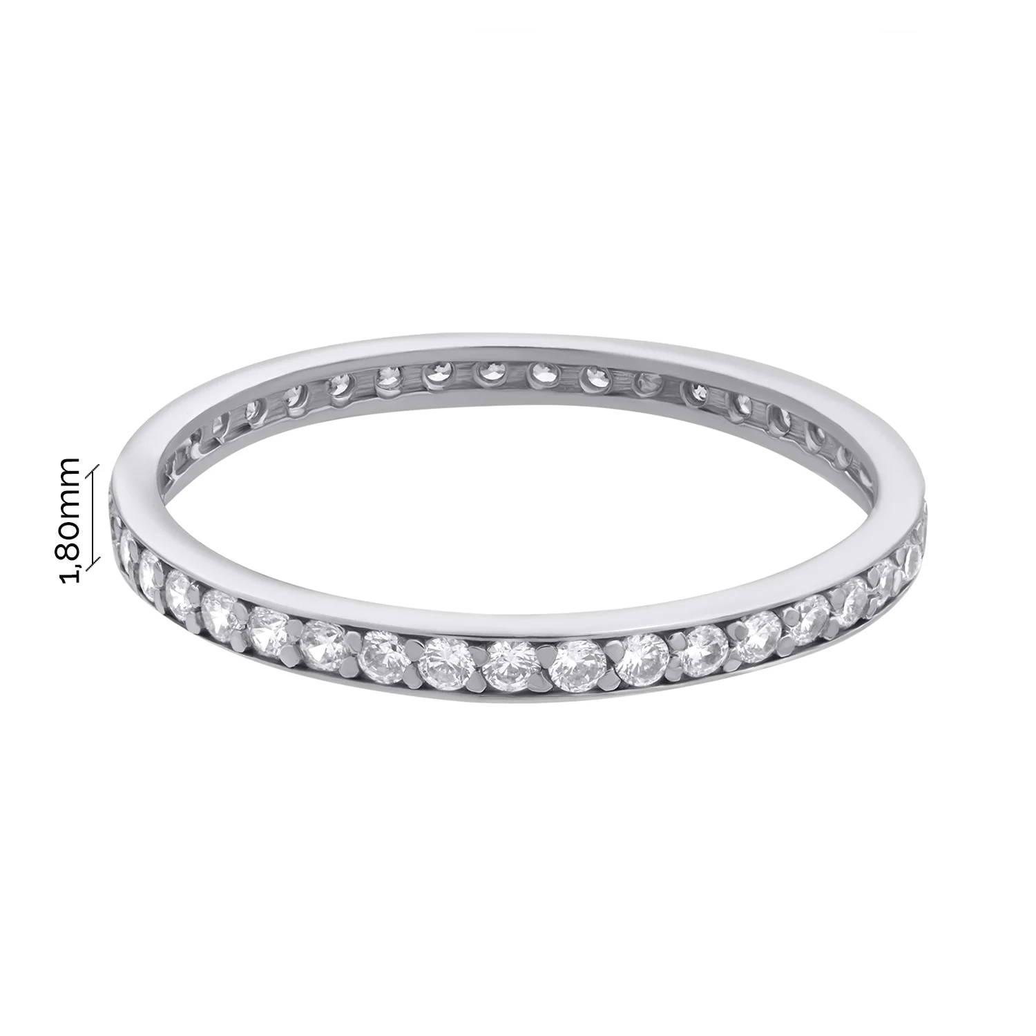 Эффектное и стильное кольцо из белого золота полностью усыпано кристаллами. Цирконий, закрепленный в ряд, создает впечатление одного целого с ободком из блестящего металла. Такая конструкция выгодно подчеркивает фактуры обоих материалов, создавая игру света и переливаясь холодными бликами. Белое золото 585 пробы и прозрачный камень хорошо комбинируются с другими металлами. Это позволяет миксовать украшения и создавать многогранные интересные образы. А классический дизайн никогда не потеряет своей актуальности.