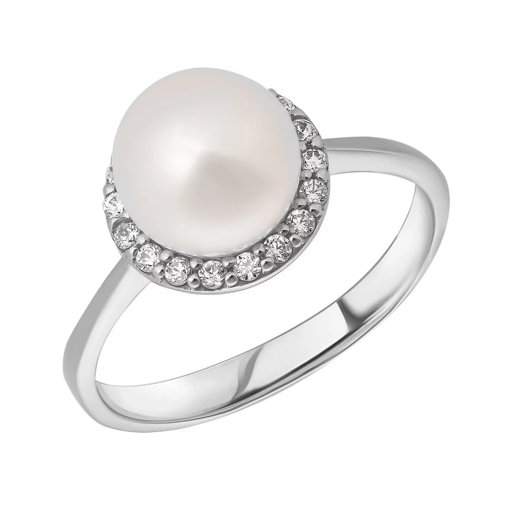 Кольцо из белого золота с жемчугом и фианитами - 964998