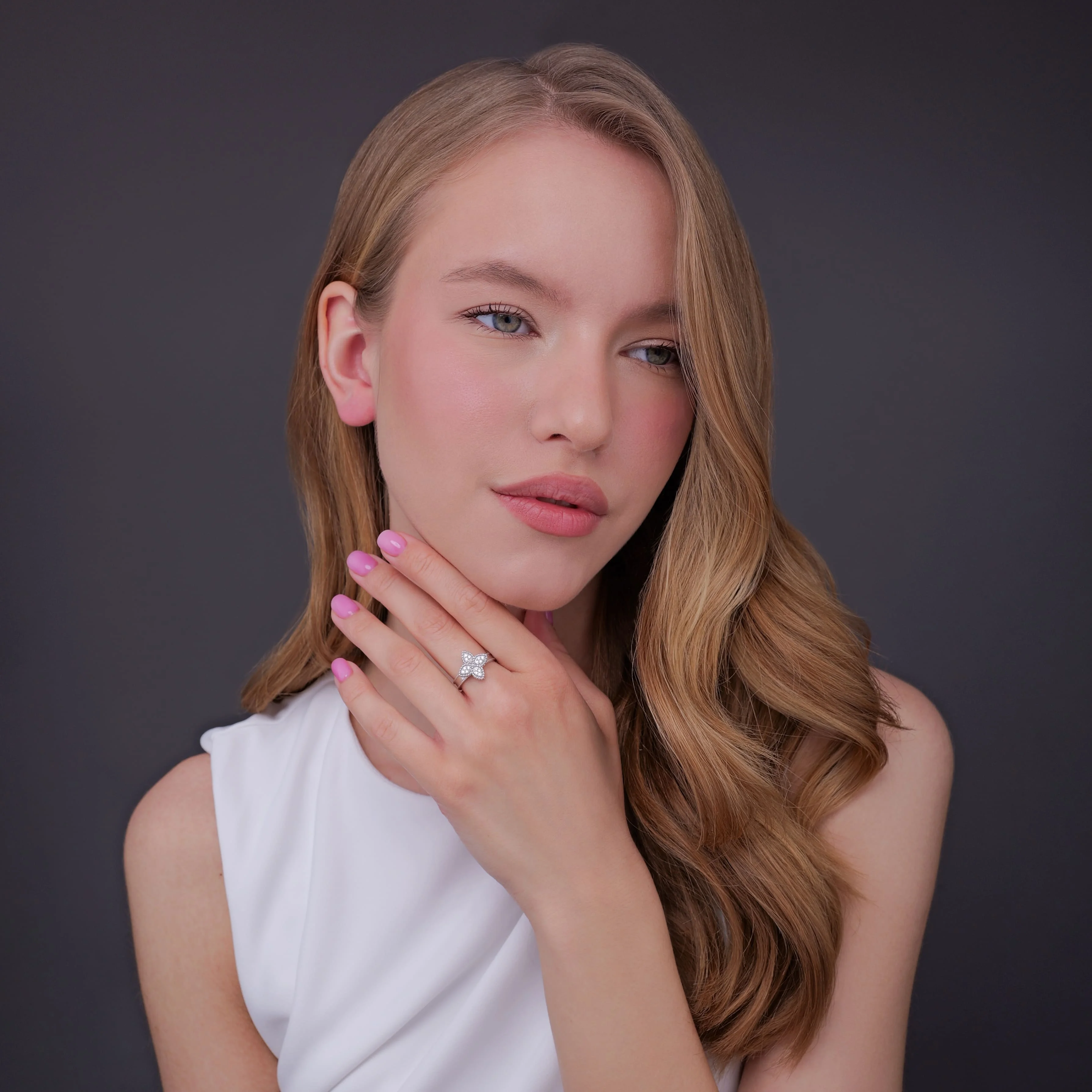 Кольцо из белого золота "Цветок" с бриллиантами - 1987415