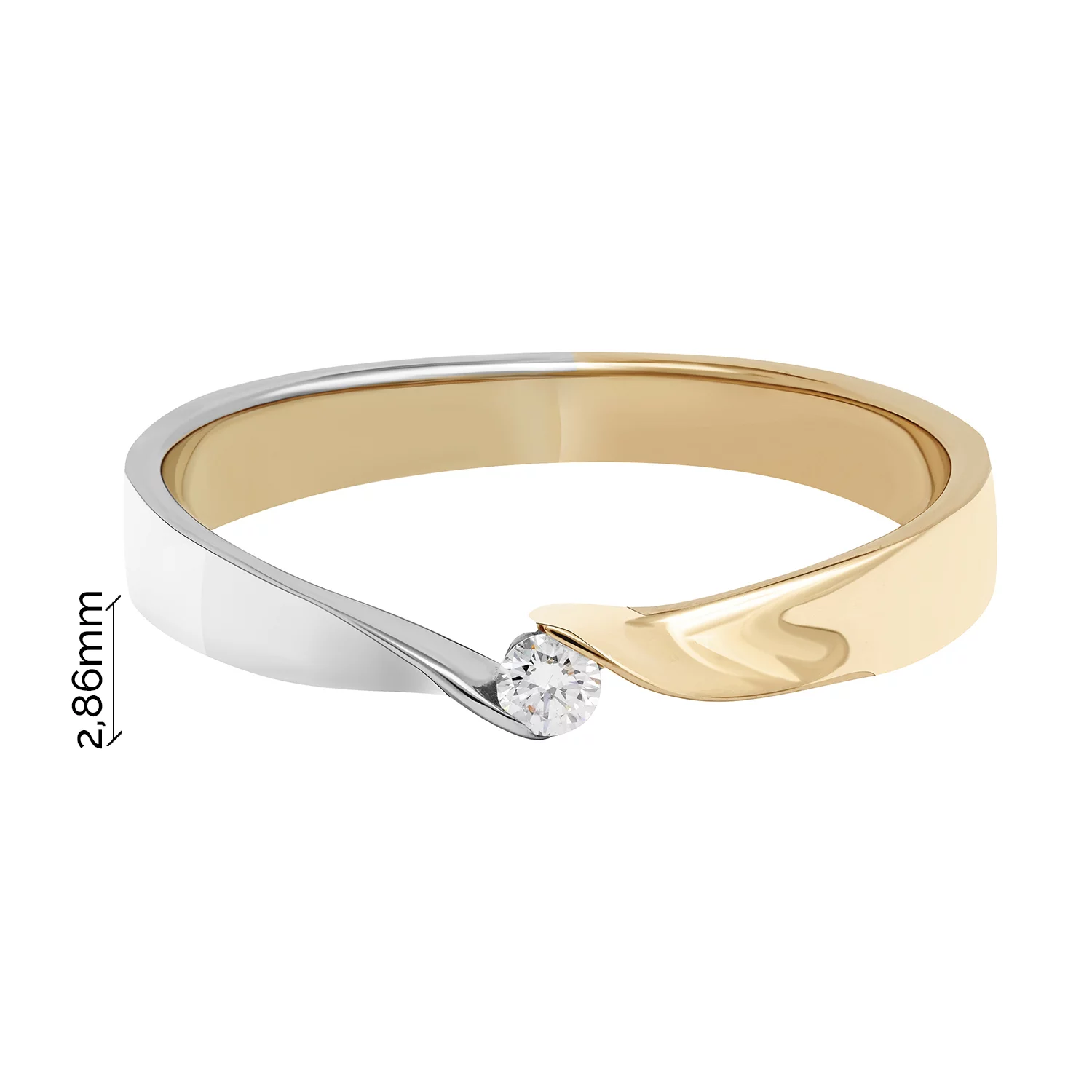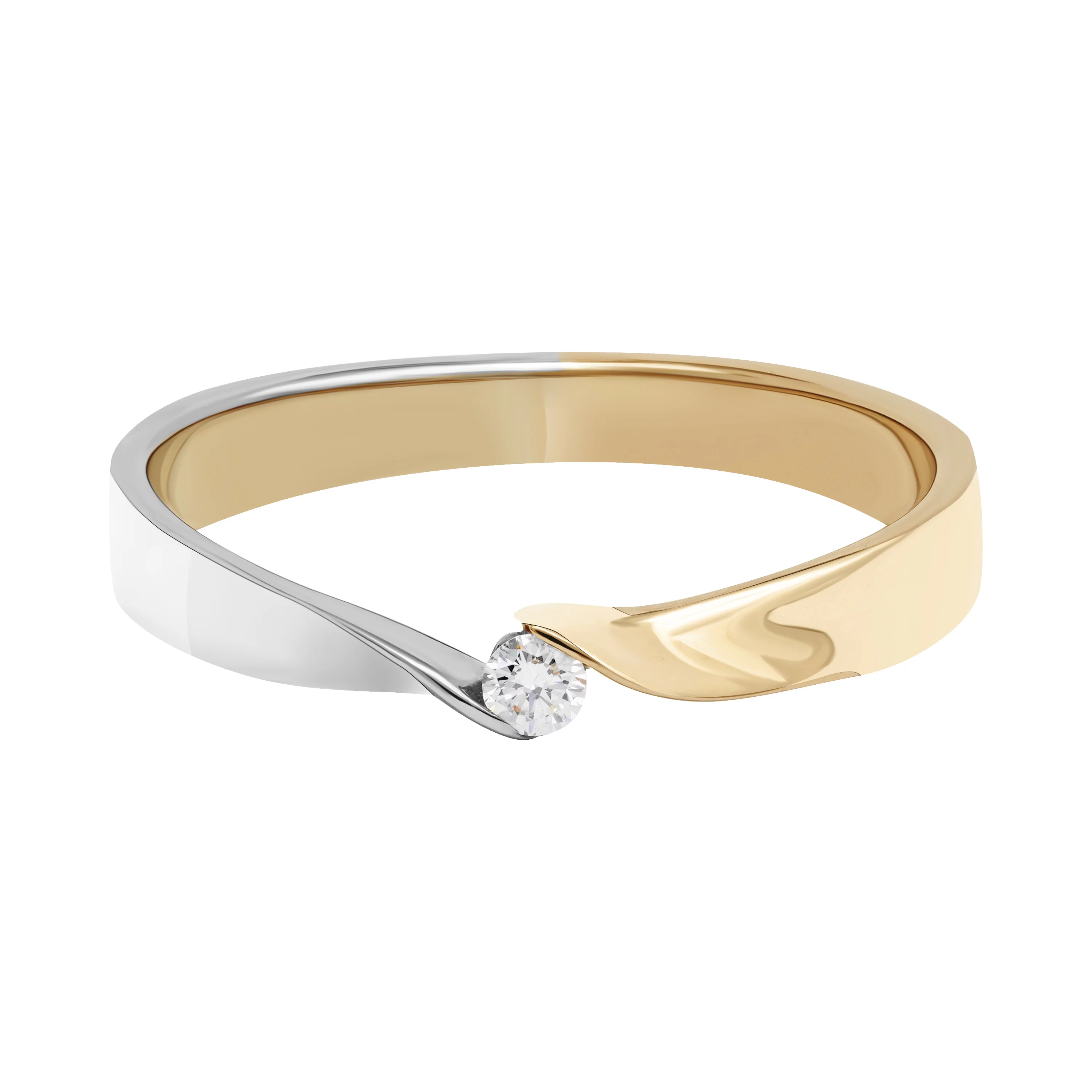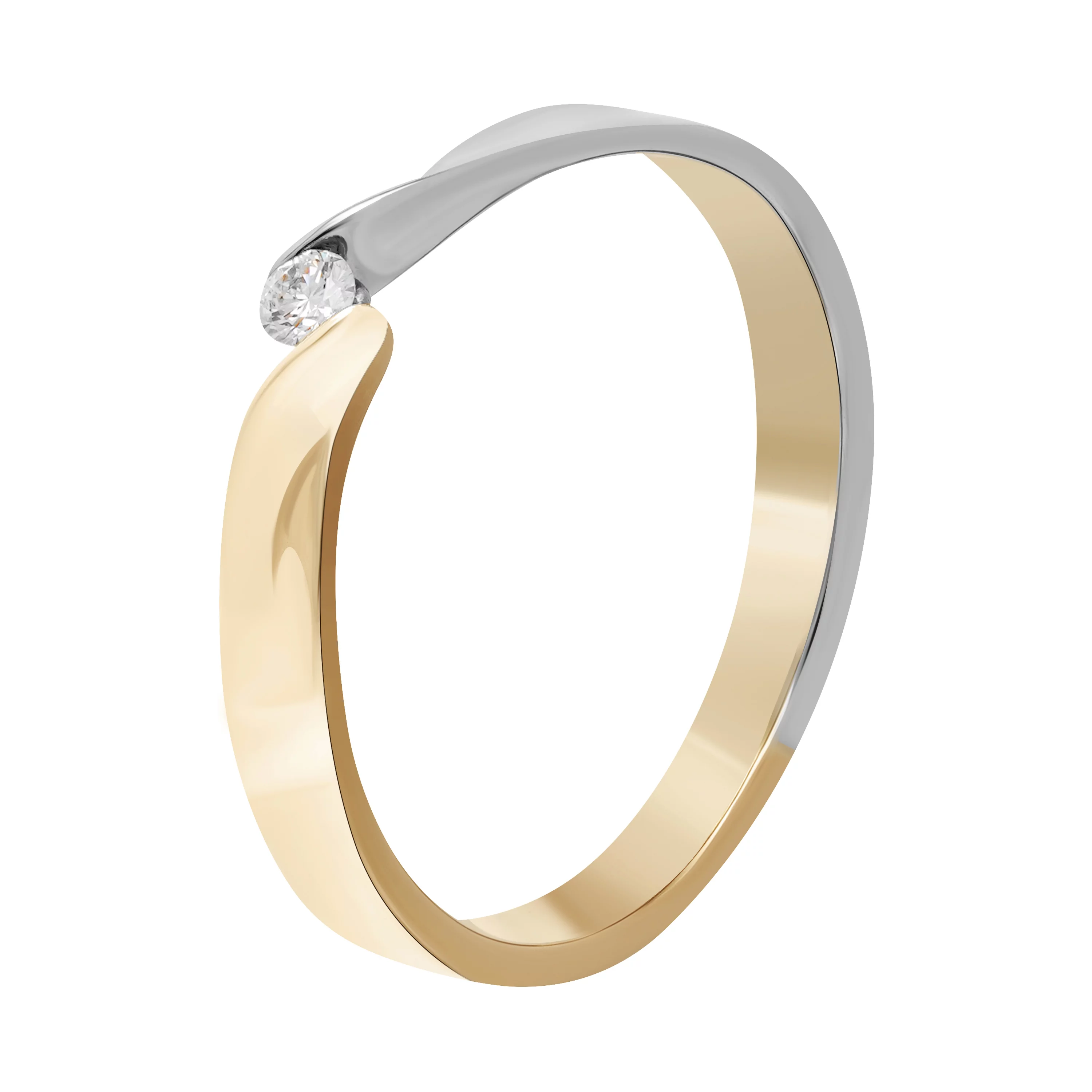 Классическое кольцо из комбинированного золота с бриллиантом - 1879119