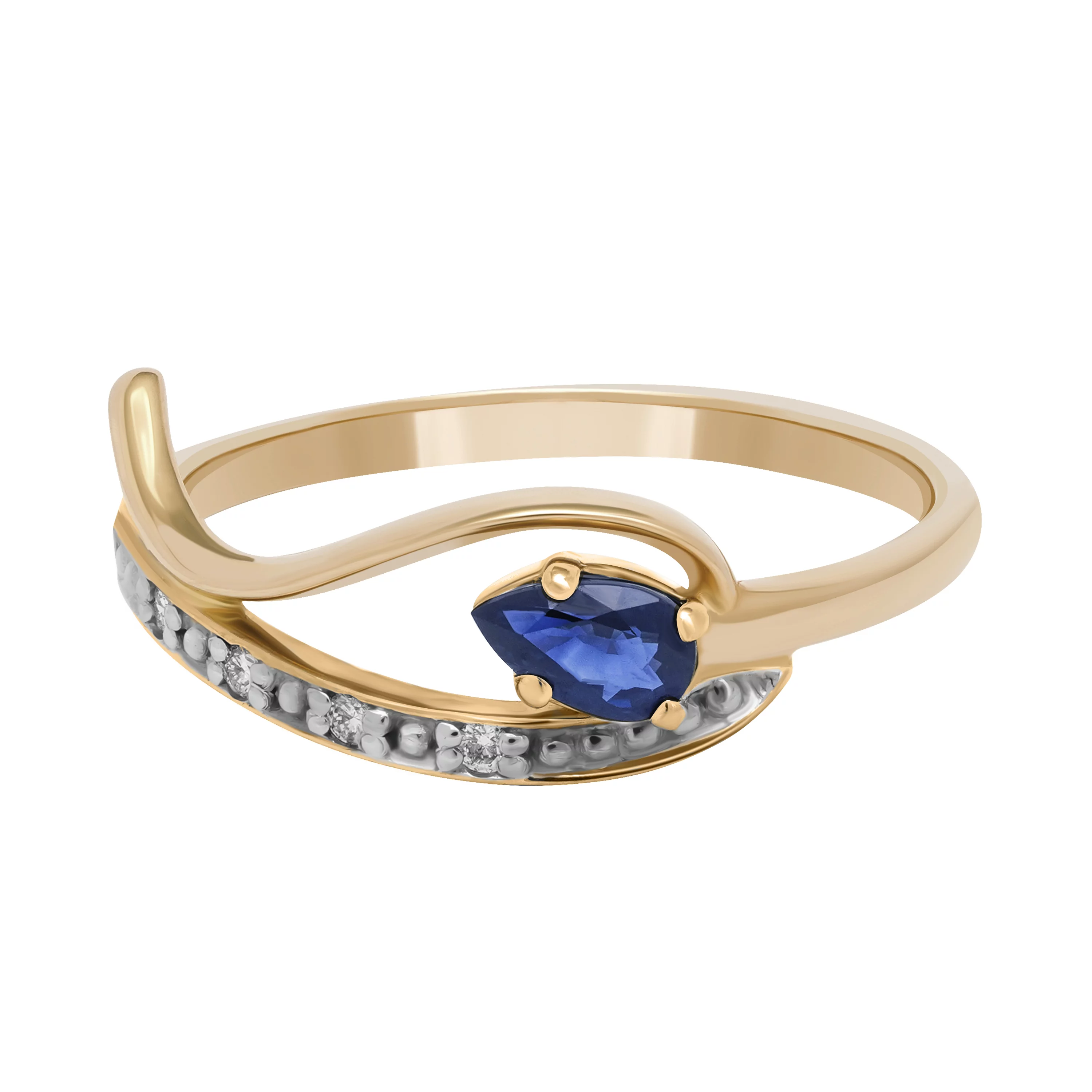 Кольцо из комбинированного золота с дорожкой бриллиантов исапфиром - 1801430