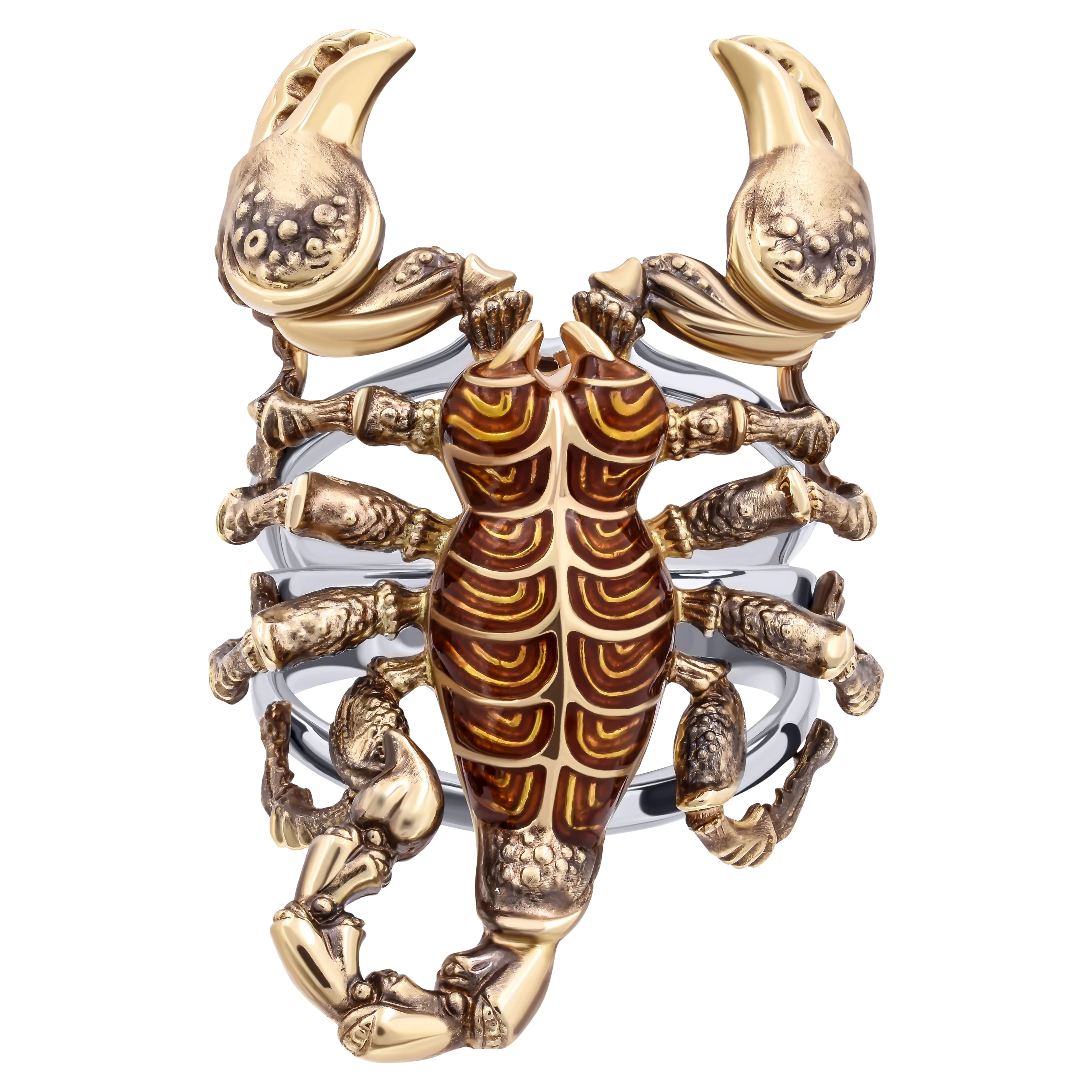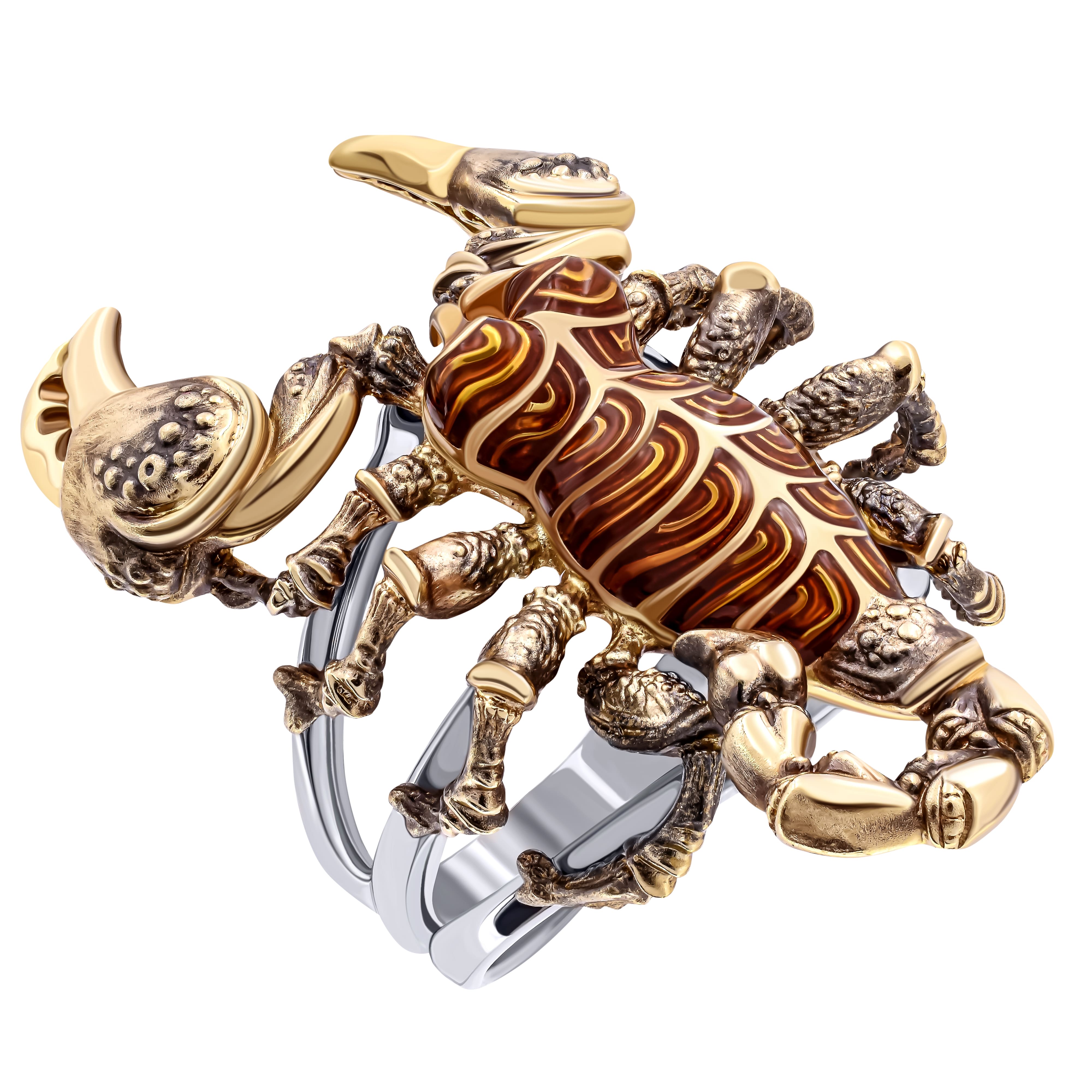 Кольцо из комбинированного золота с эмалью "Скорпион" - 960828