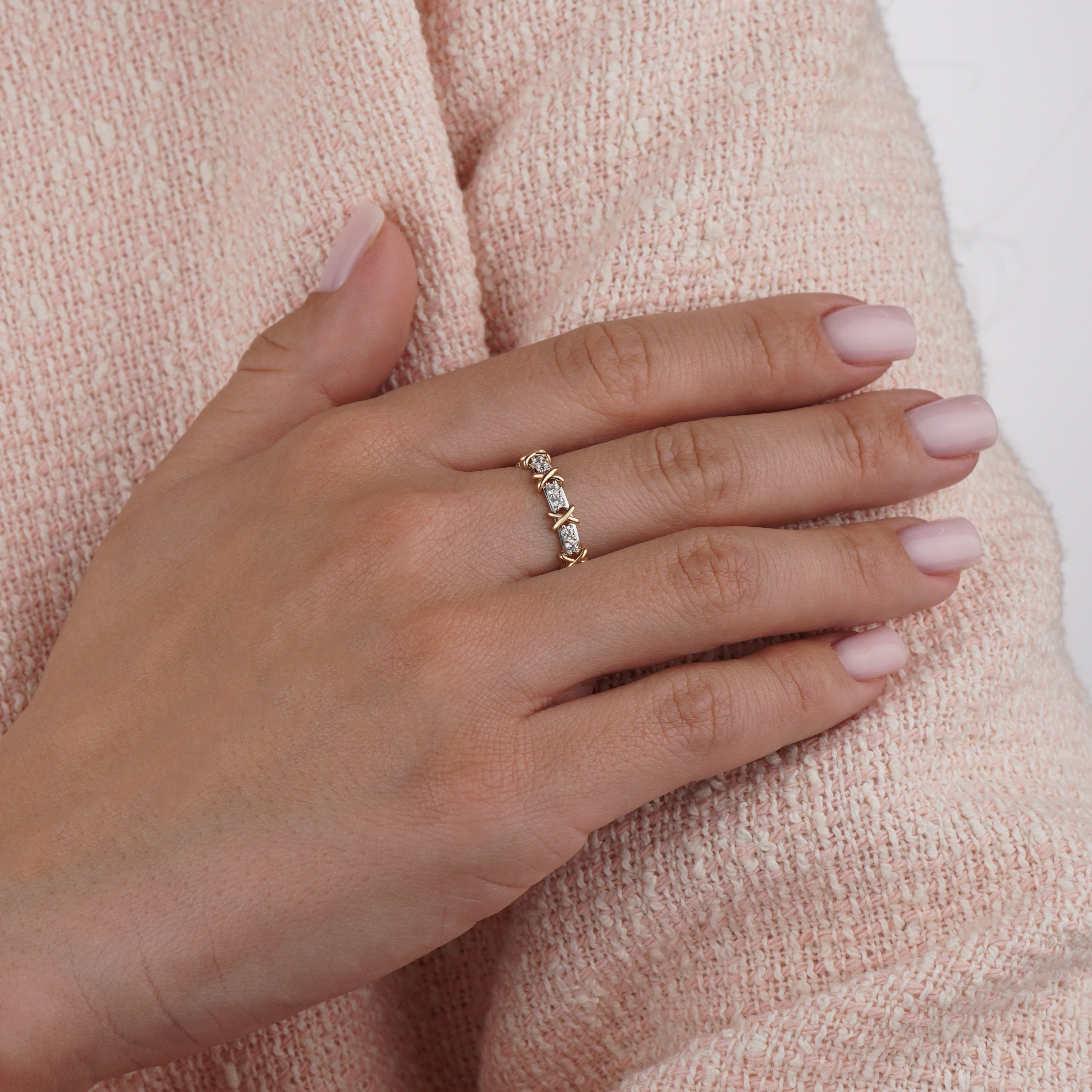 Кольцо из комбинированного золота с фианитами - 2220369