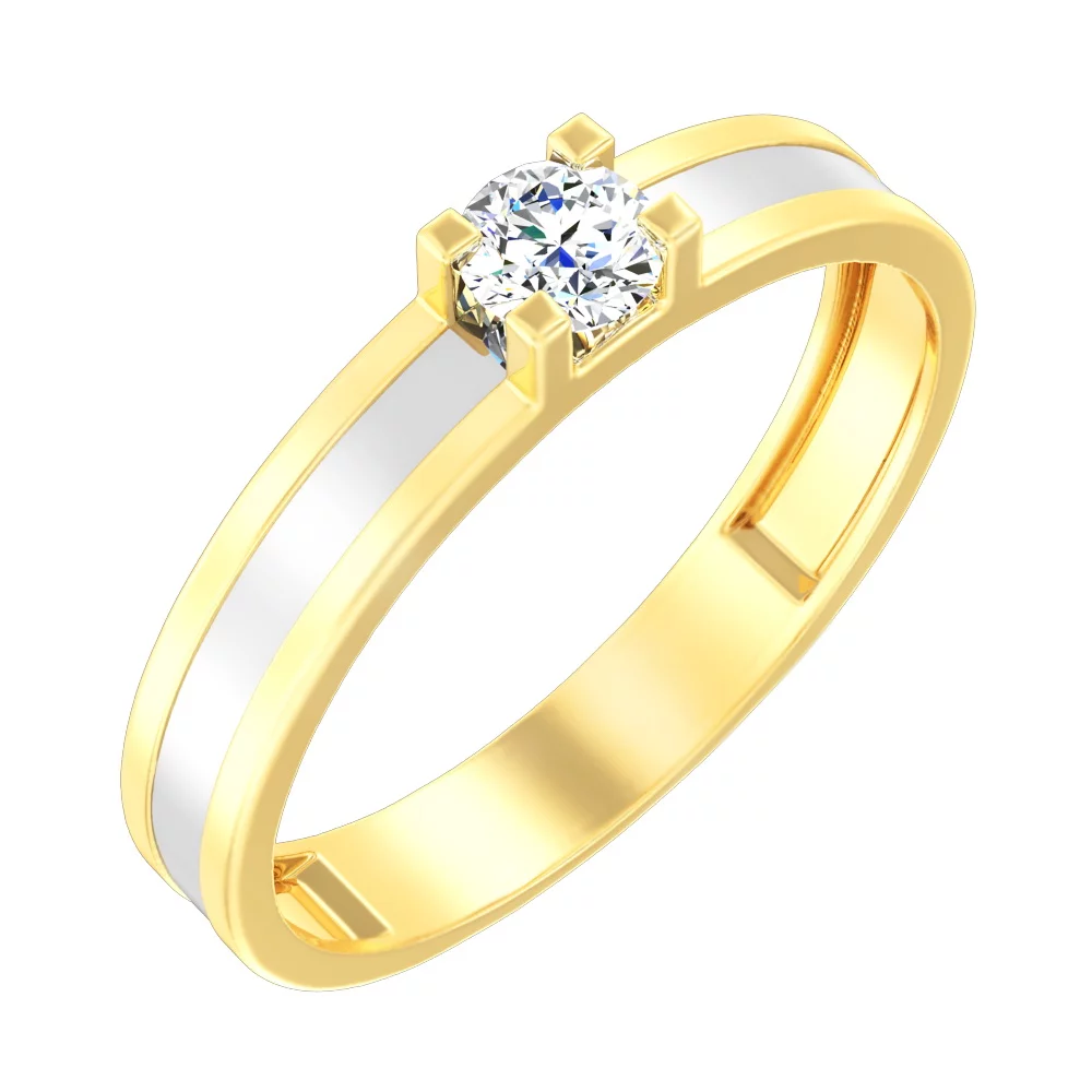 Кольцо из комбинированного золота с фианитом - 1513887