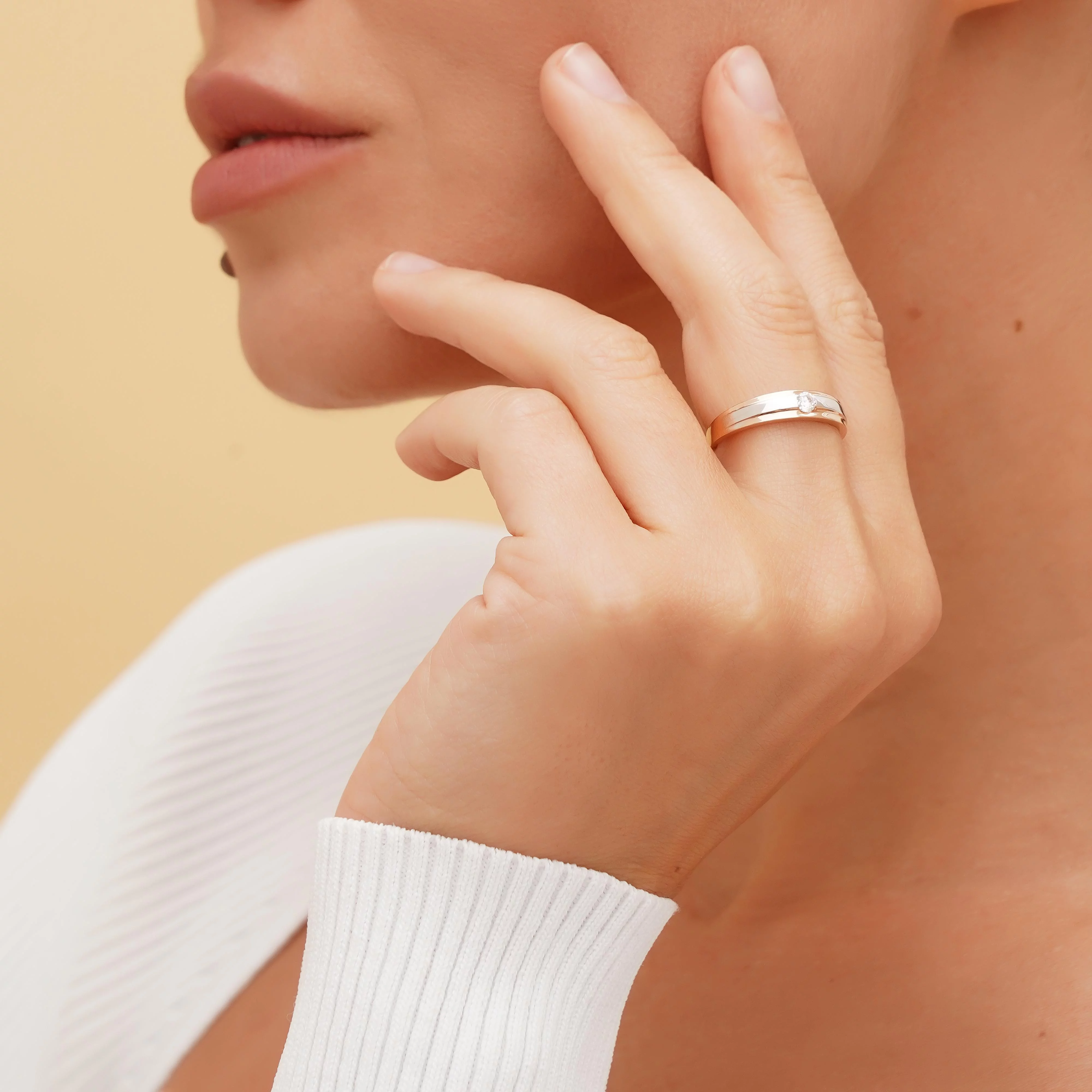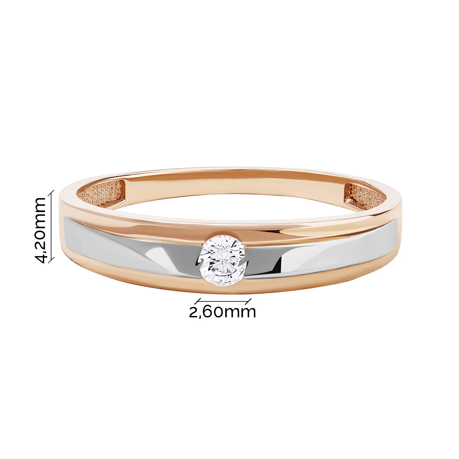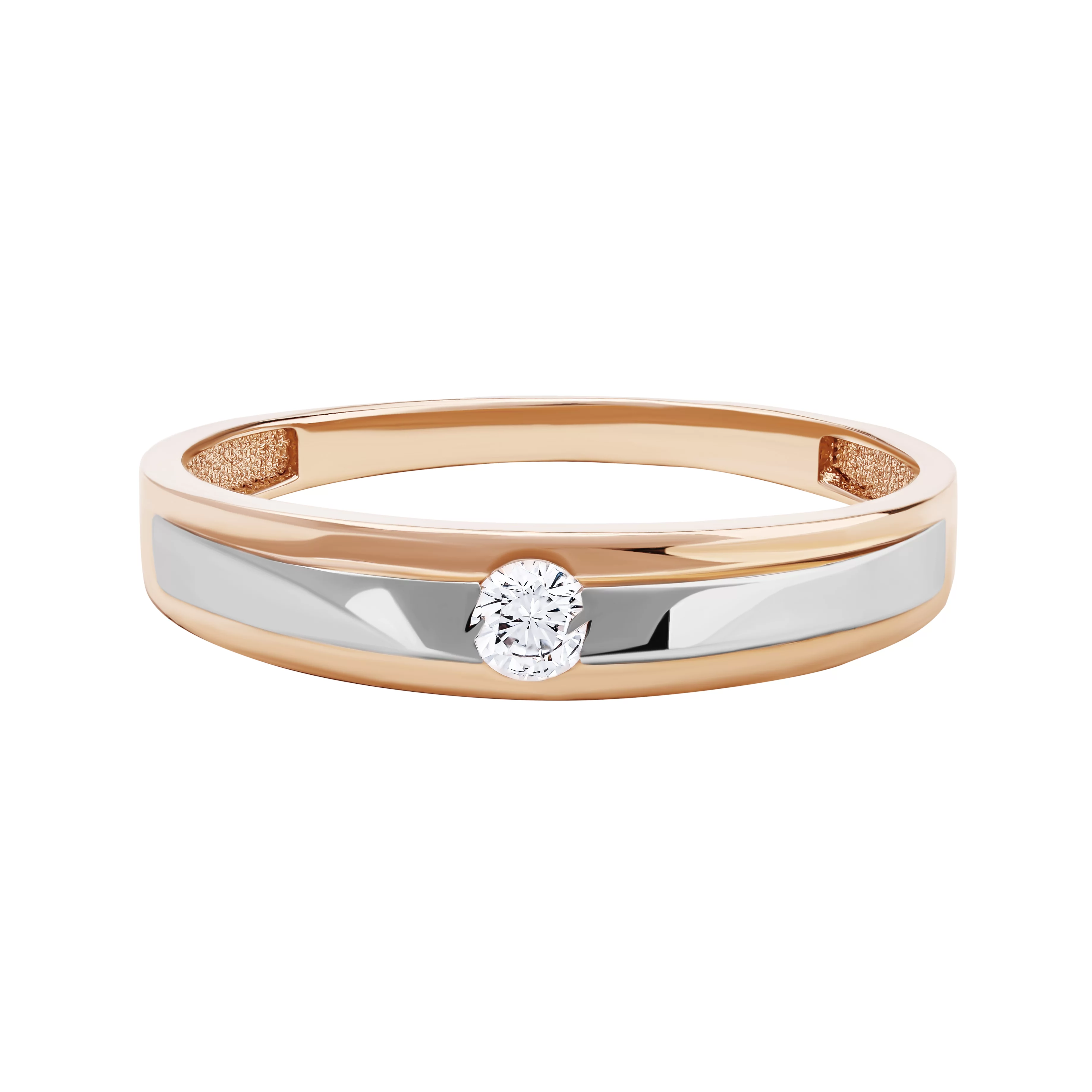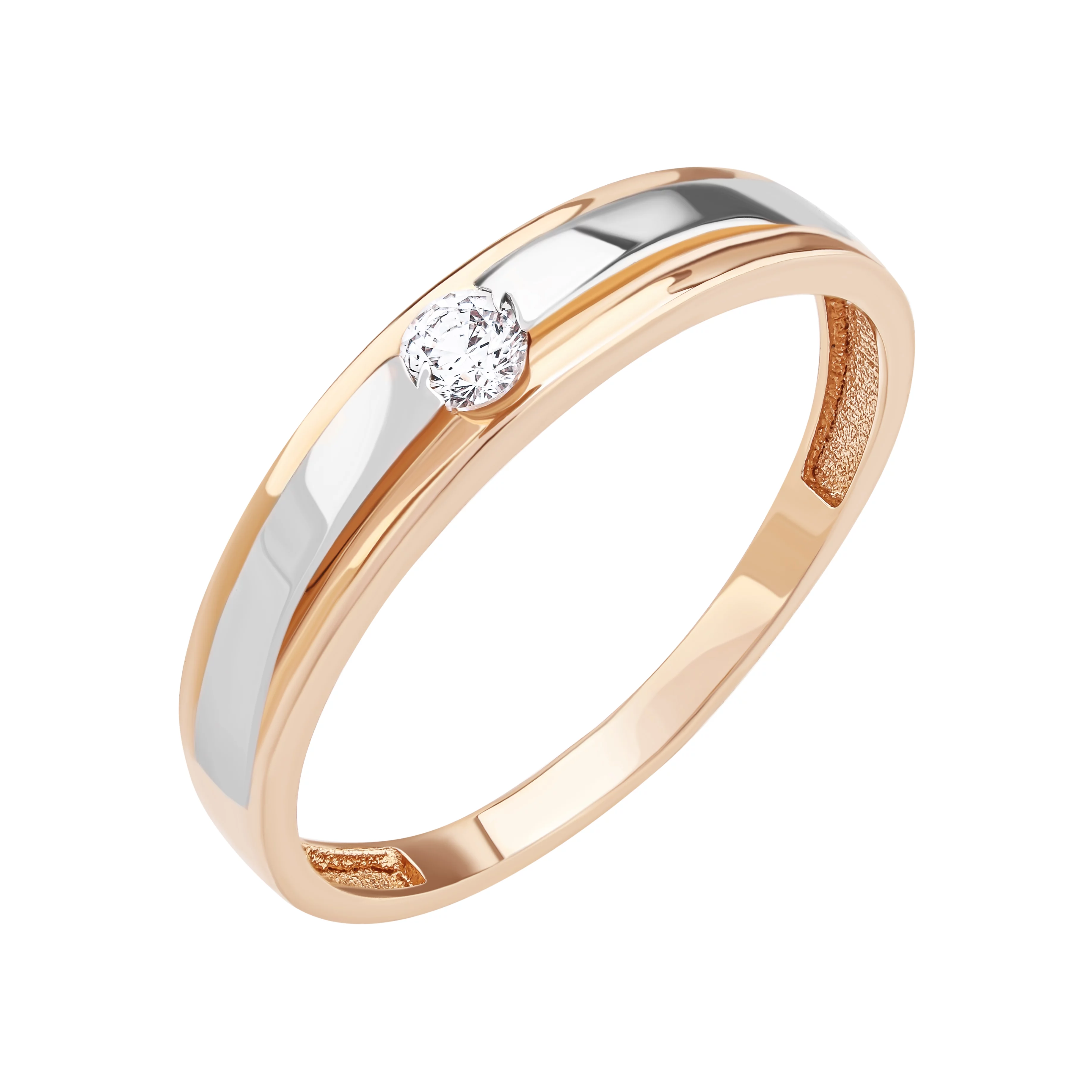 Кольцо из комбинированного золота в минималистичном стиле с фианитом - 1878027