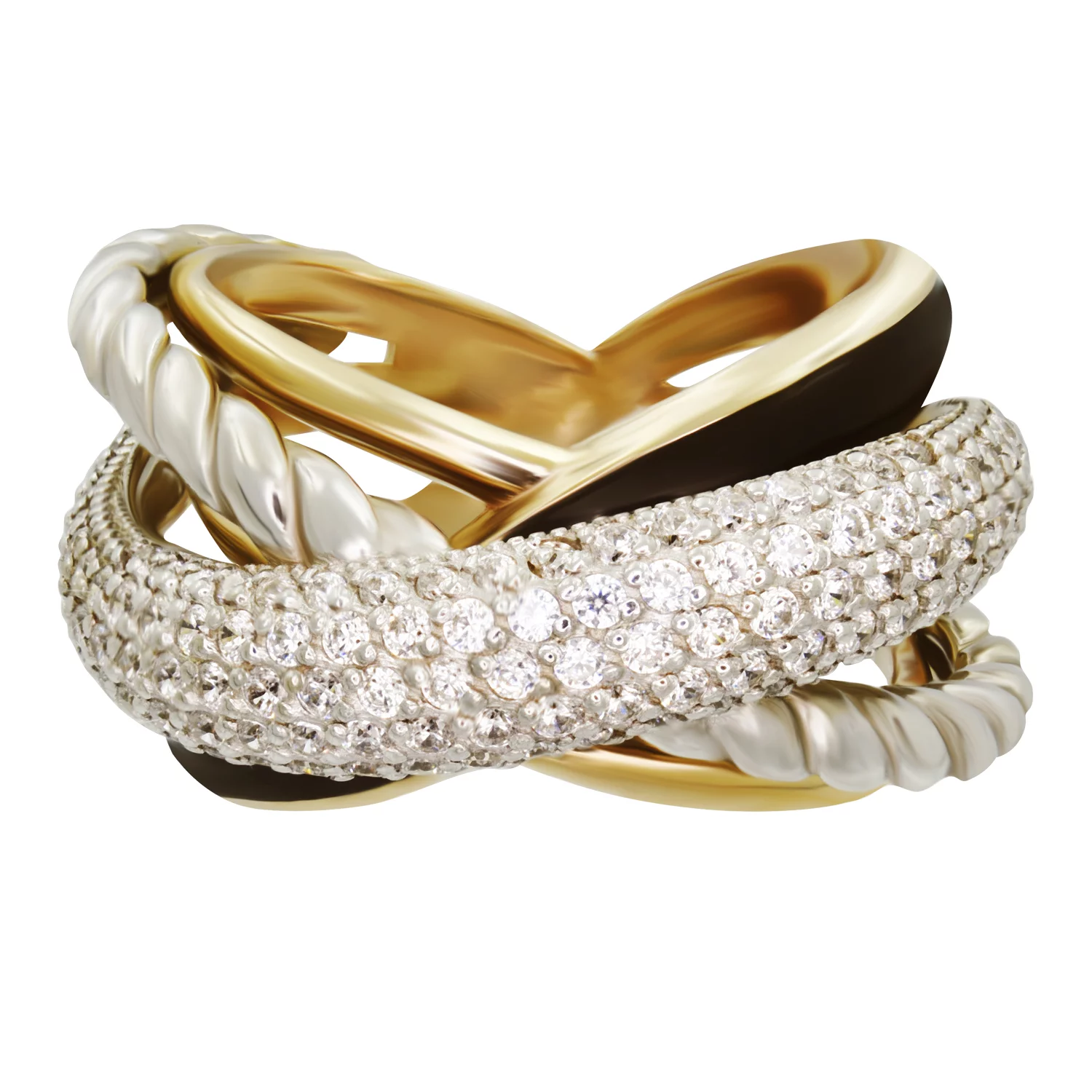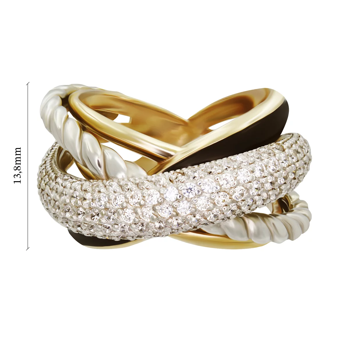Кольцо из комбинированного золота с фианитом и эмалью - 937734