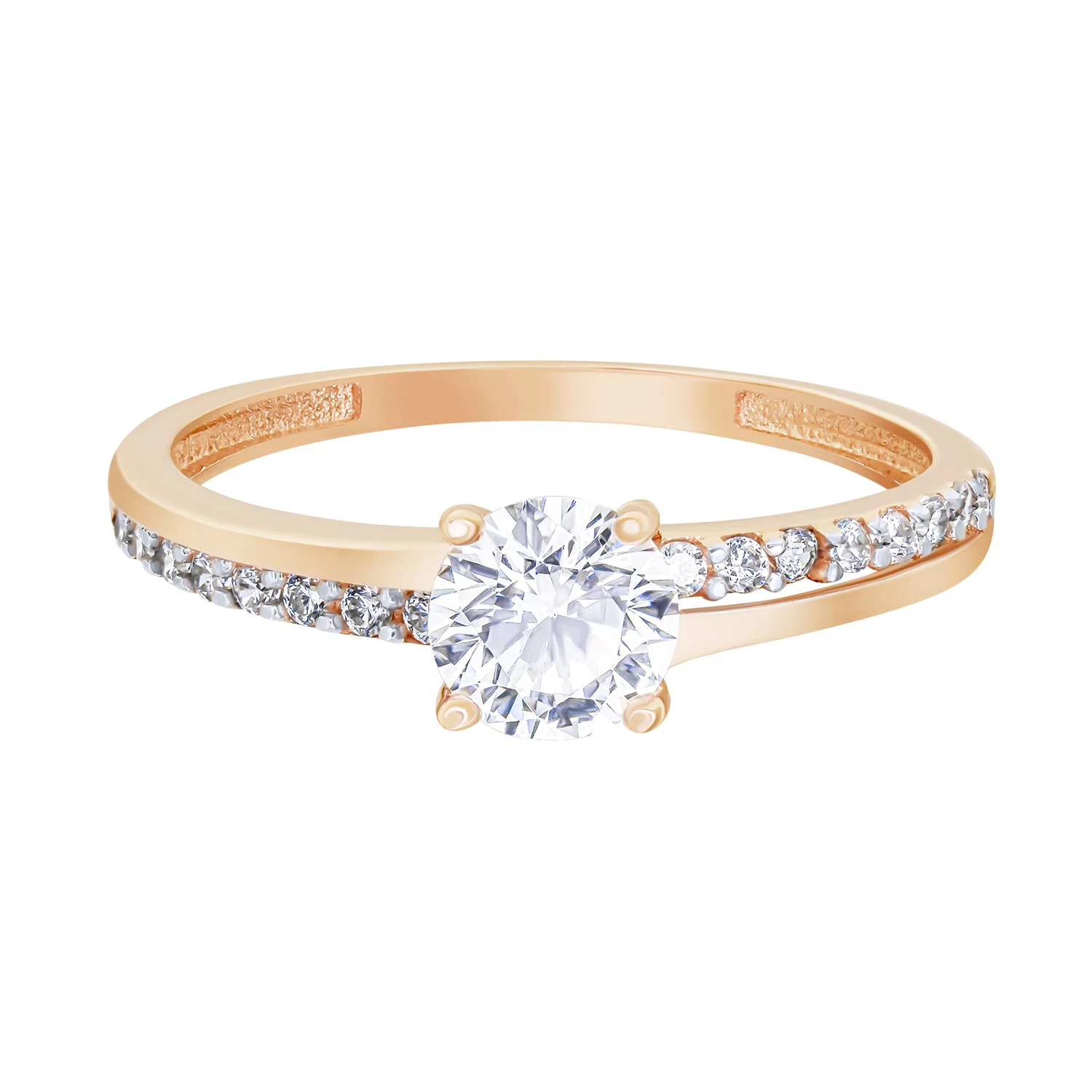 Кольцо из красного золота с дорожкой фианитов - 1716157