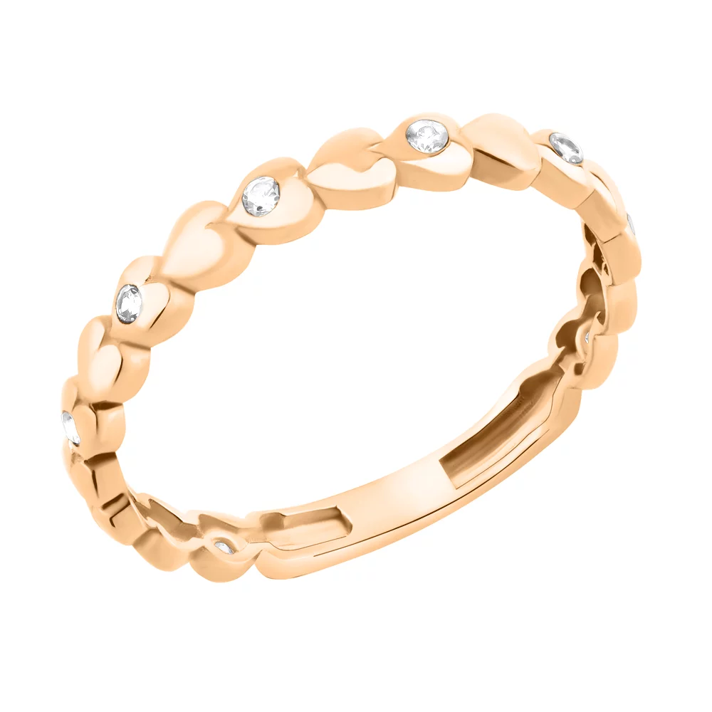 Кольцо из красного золота дорожка из "Сердечек" с фианитами - 1519948