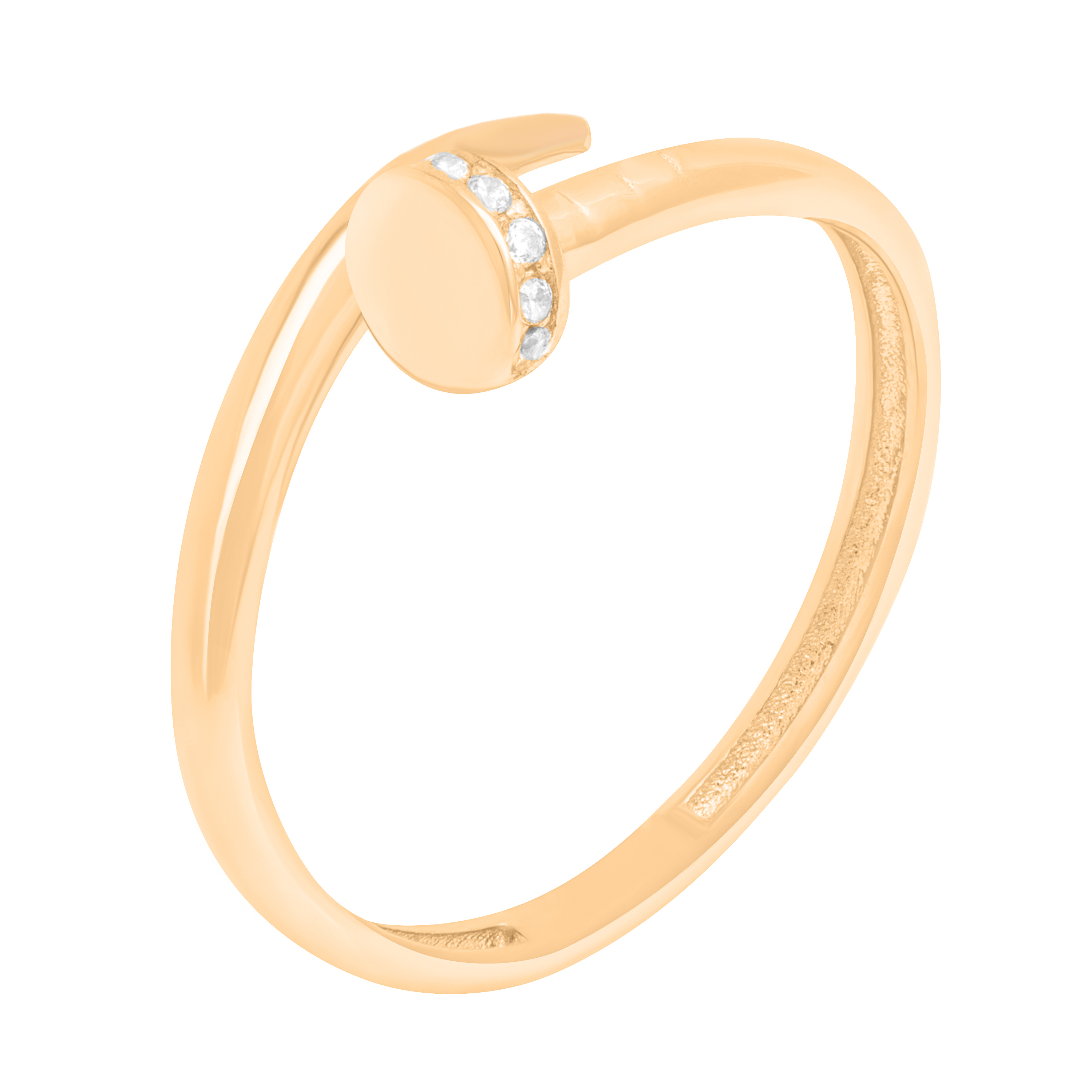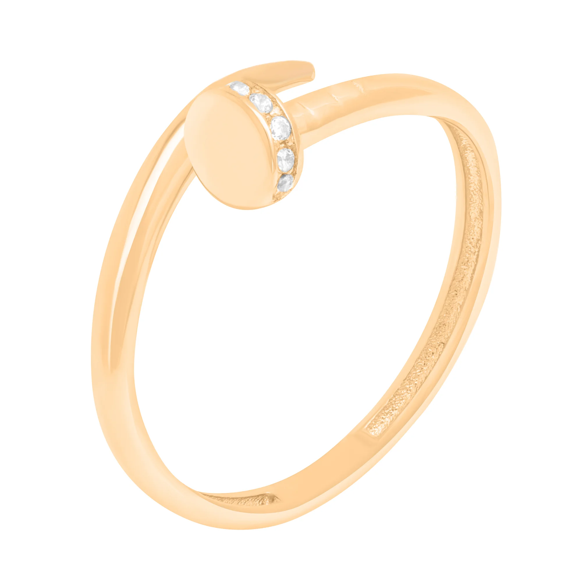 Кольцо из красного золота с дорожкой фианитов и подвеской "Сердце" - 1722985