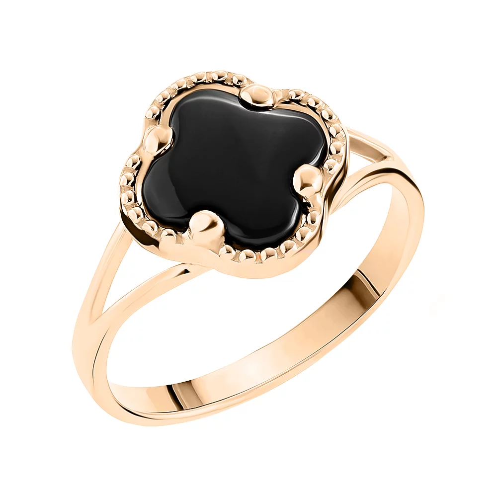 Кольцо из красного золота "Клевер" с ониксом - 1514971