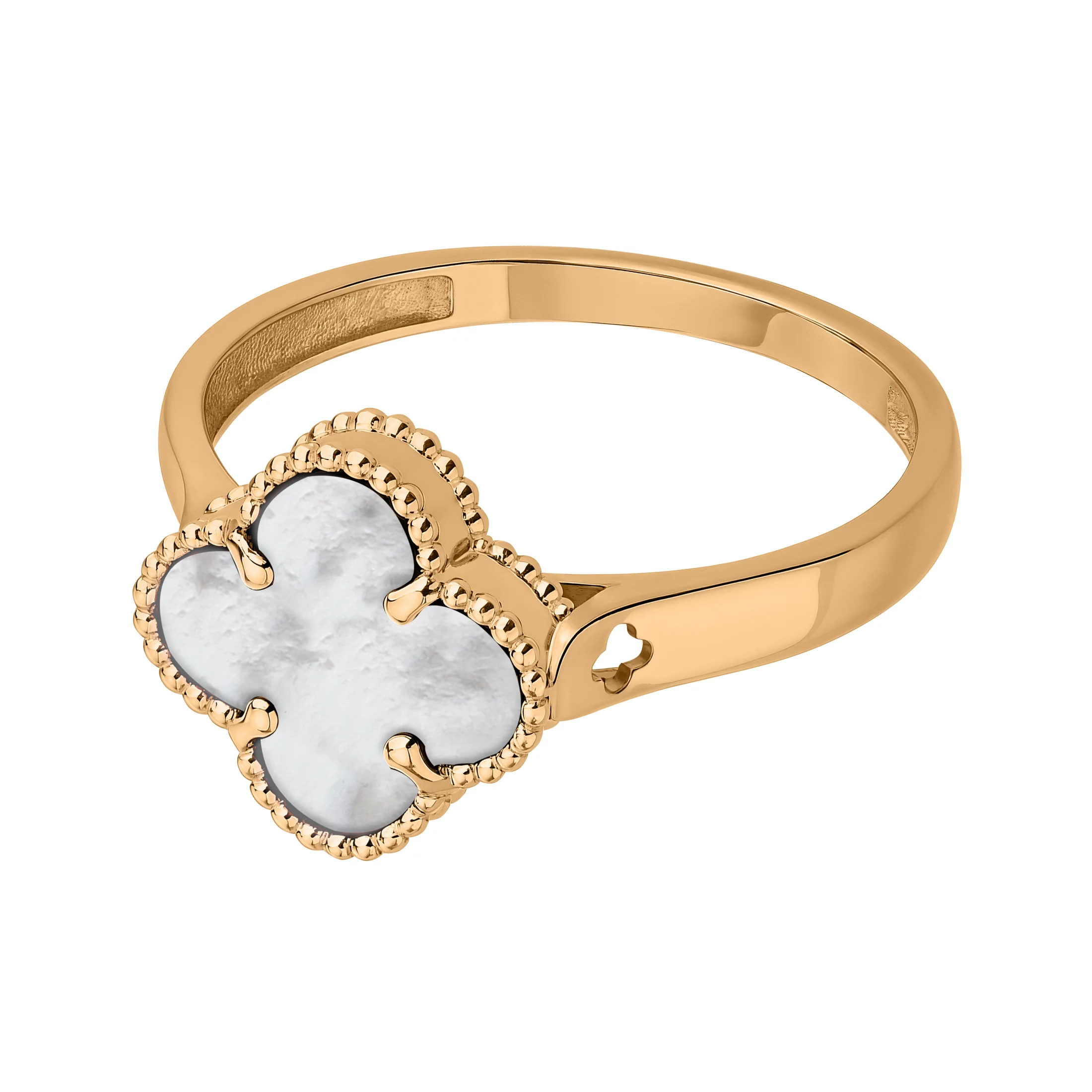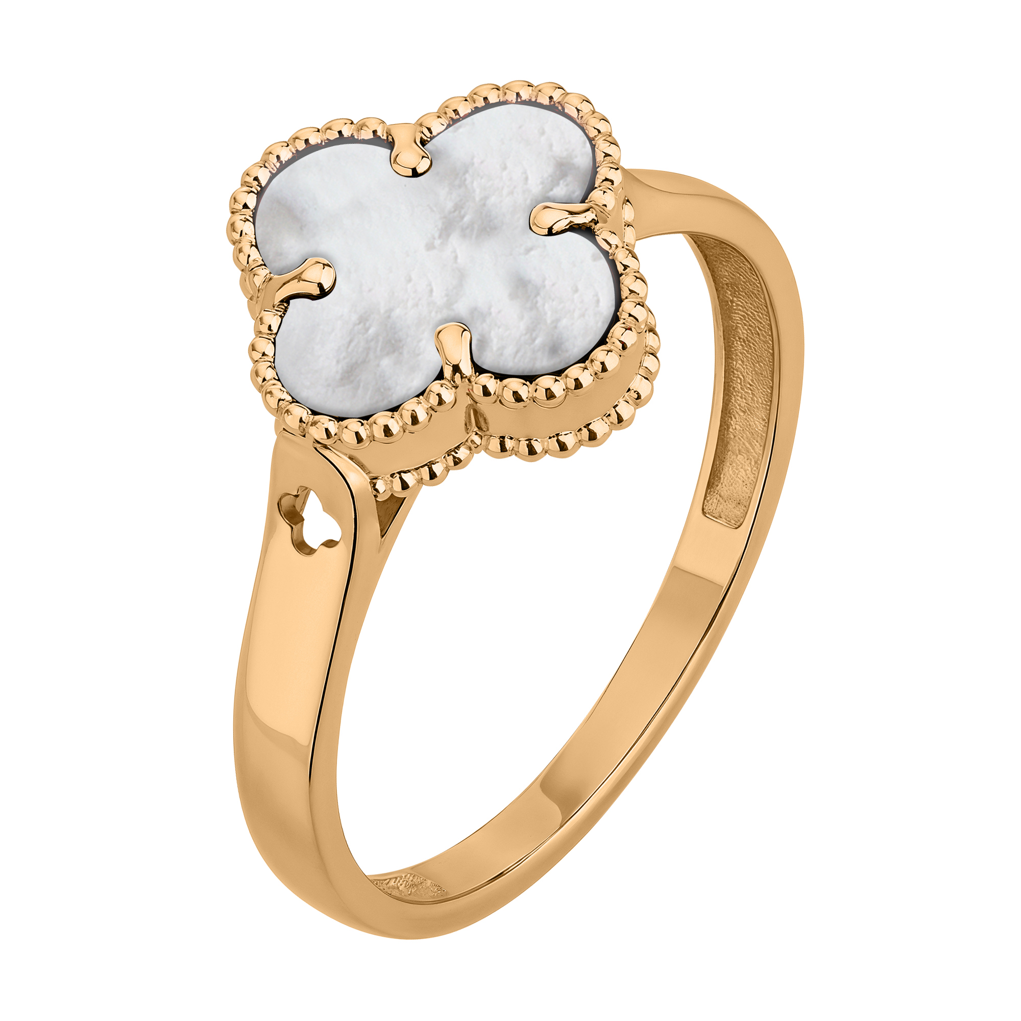 Кольцо из красного золота "Клевер" с перламутром - 2133793