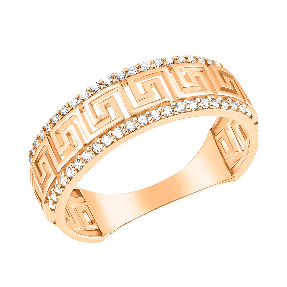 Кольцо из красного золота "Орнамент" с фианитами - 1523318
