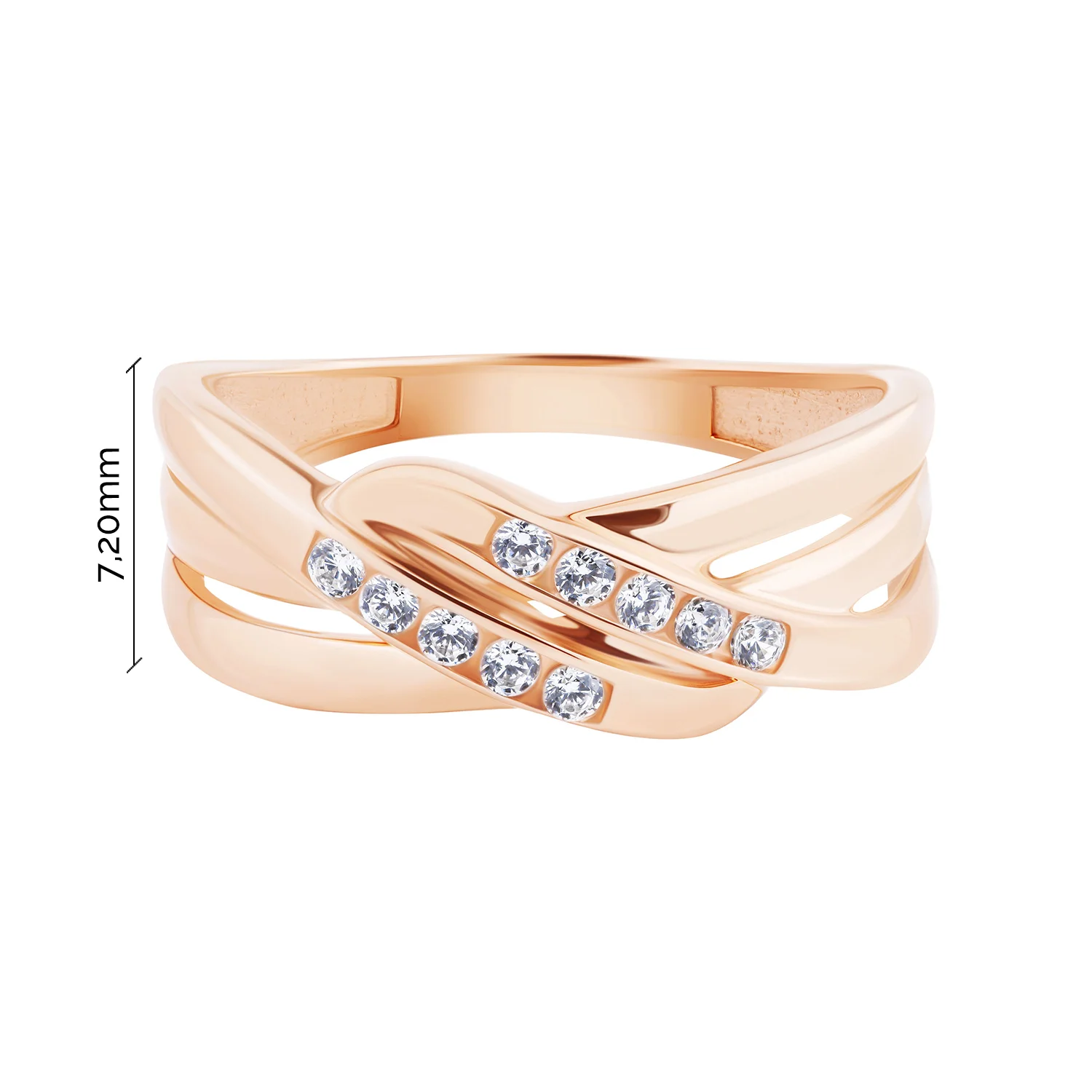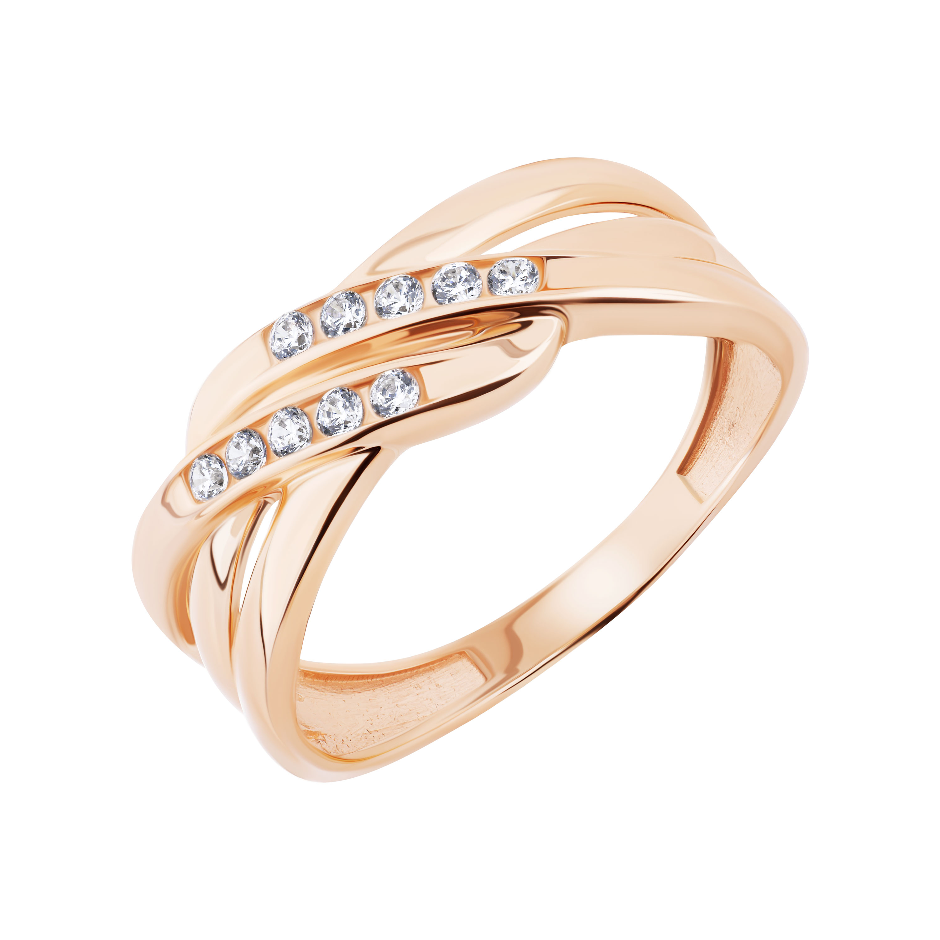 Кольцо из красного золота "Переплетение" с дорожками фианитов - 2147365