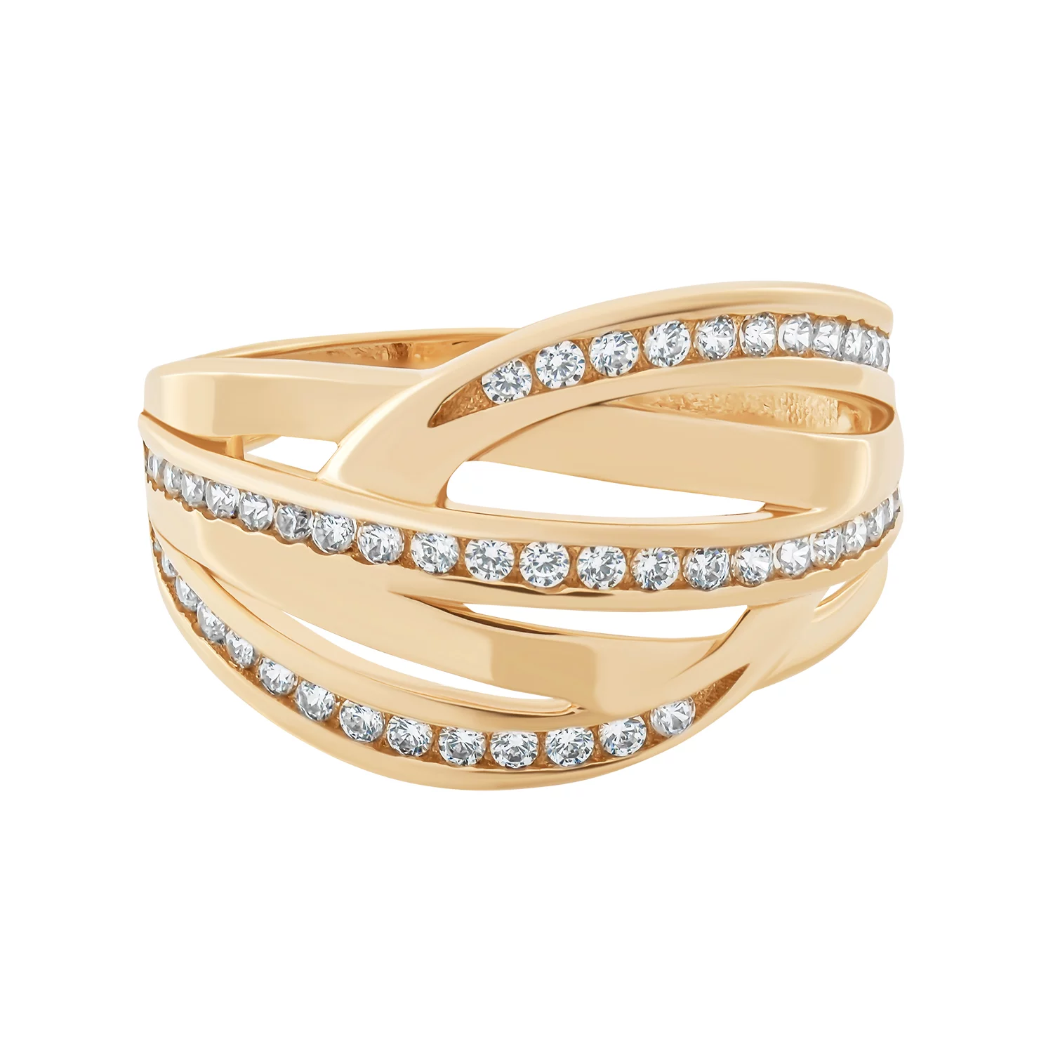 Кольцо из красного золота "Переплетение" с фианитами - 1500659
