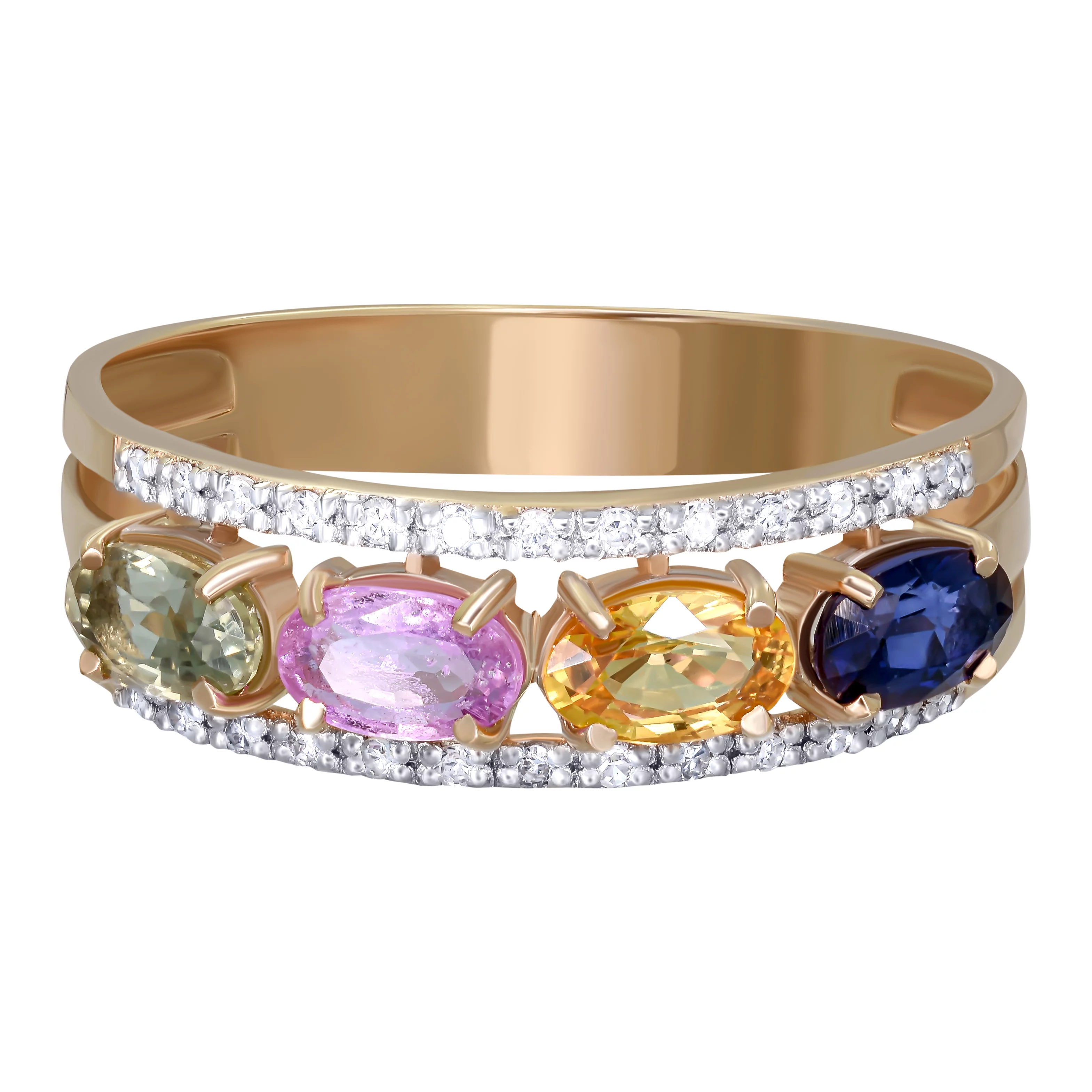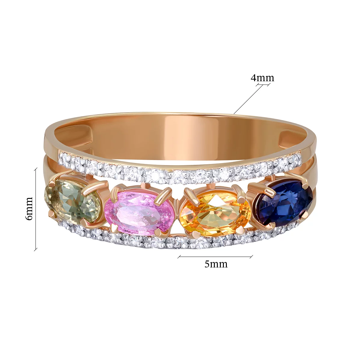 Кольцо из красного золота с бриллиантами и сапфирами - 897034