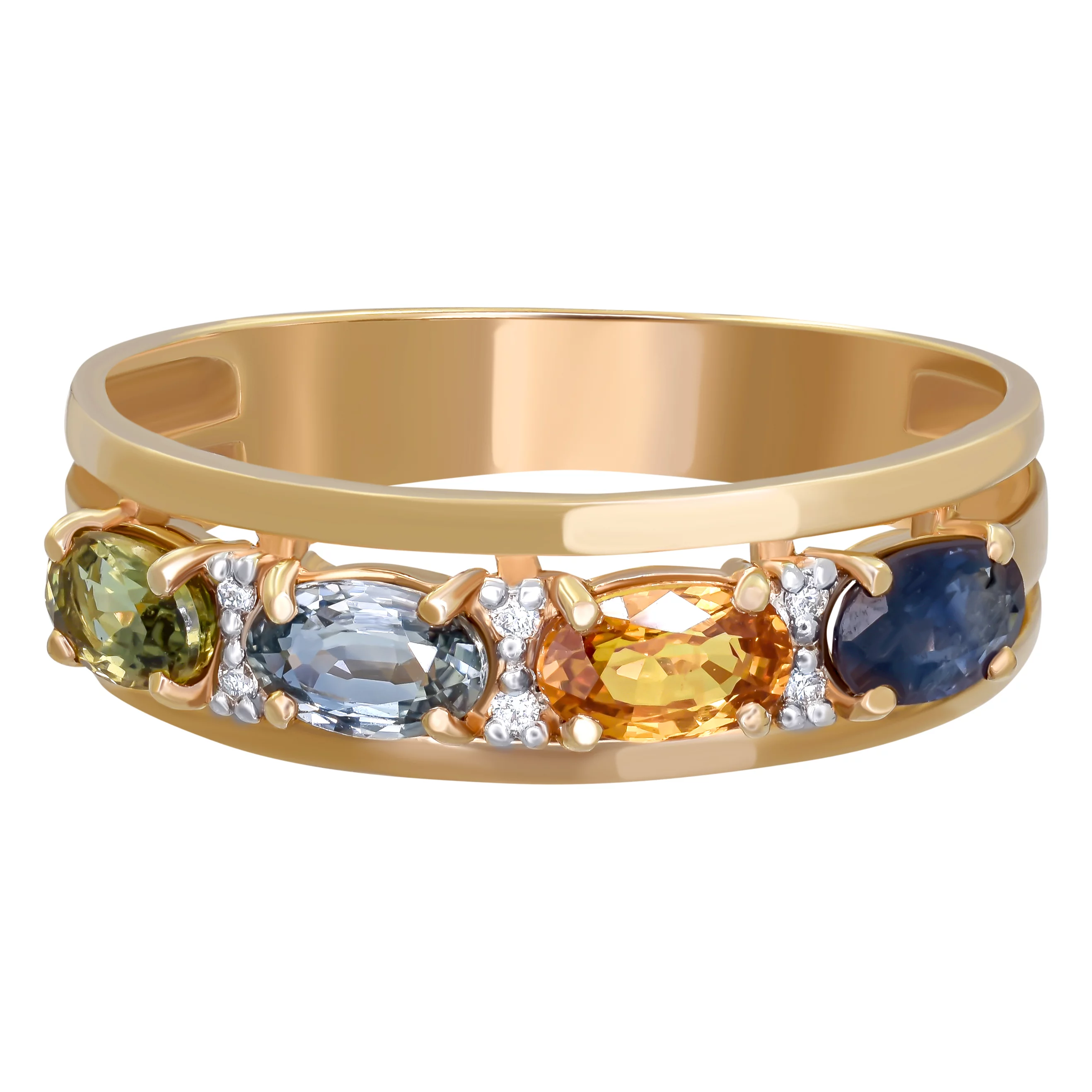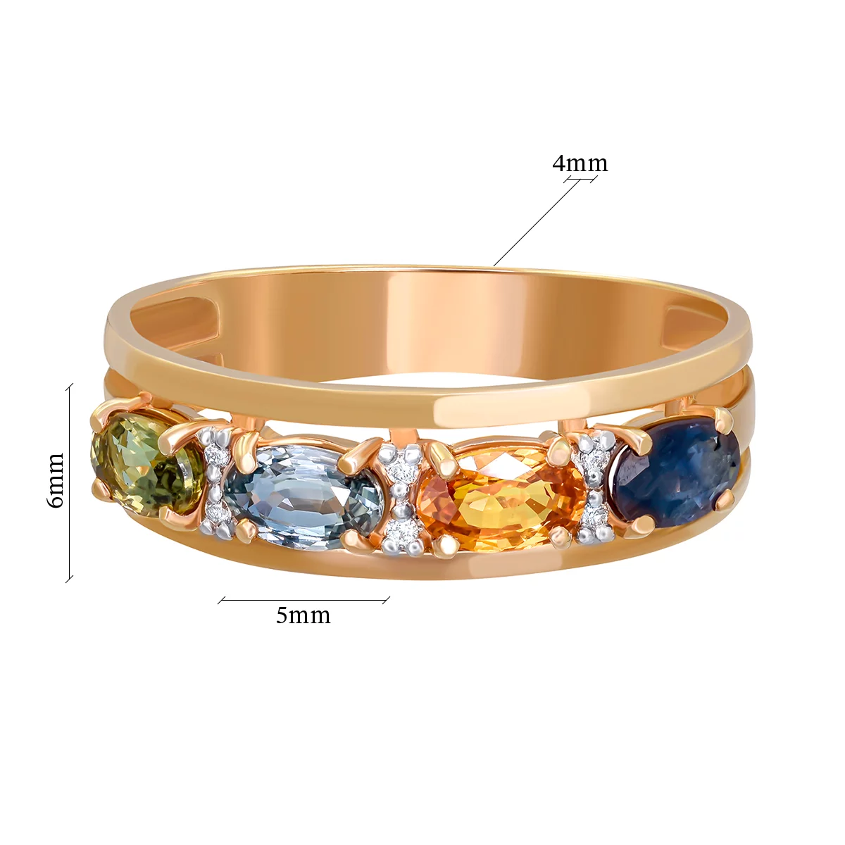 Кольцо из красного золота с бриллиантами и цветными сапфирами - 897032