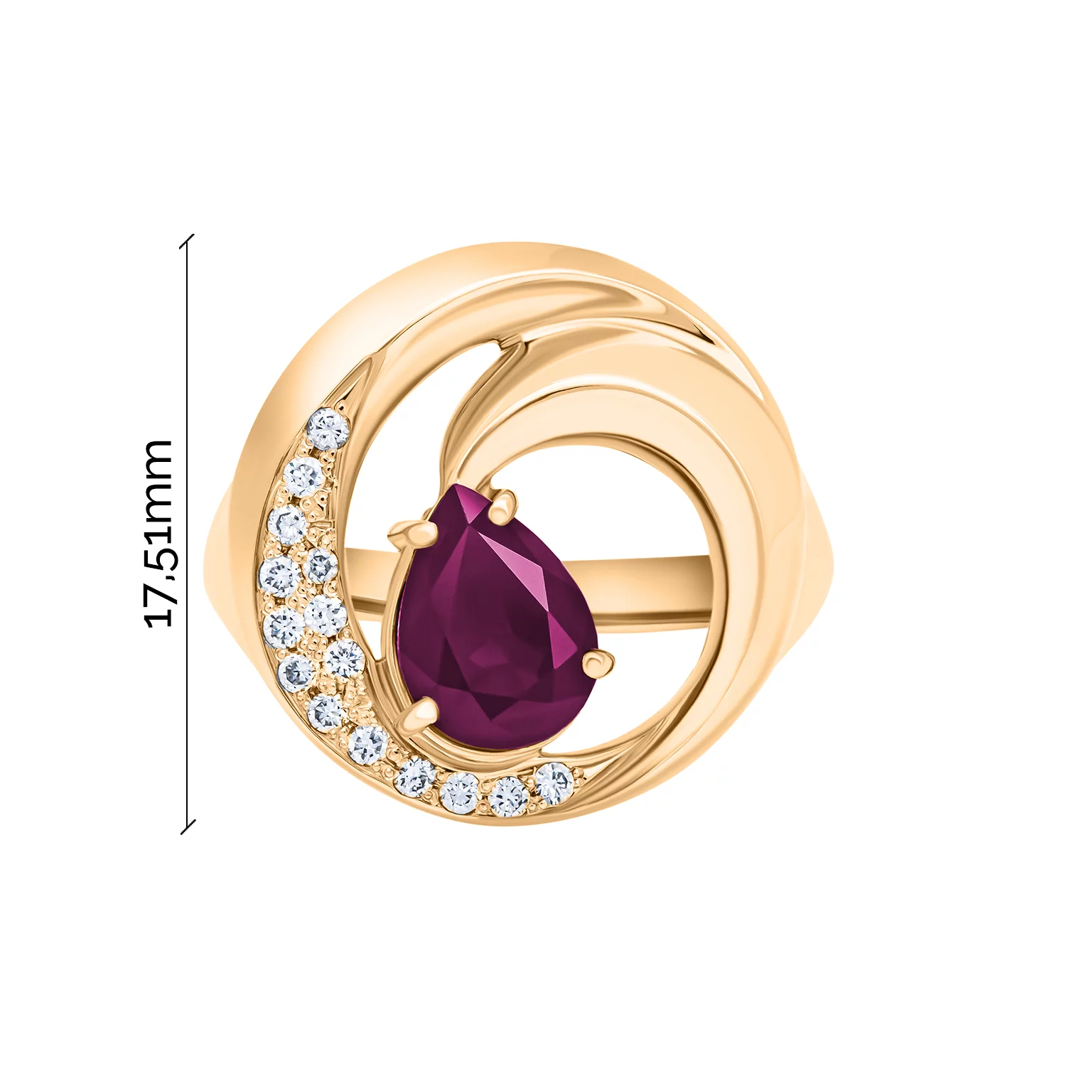 Стильное кольцо "Цветок" из красного золота с рубином и бриллиантами - 1879118