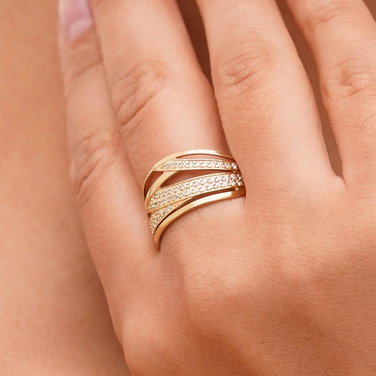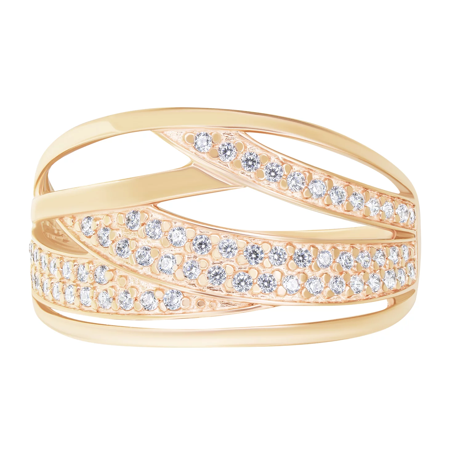 Кольцо из красного золота с дорожками фианитов - 1559813