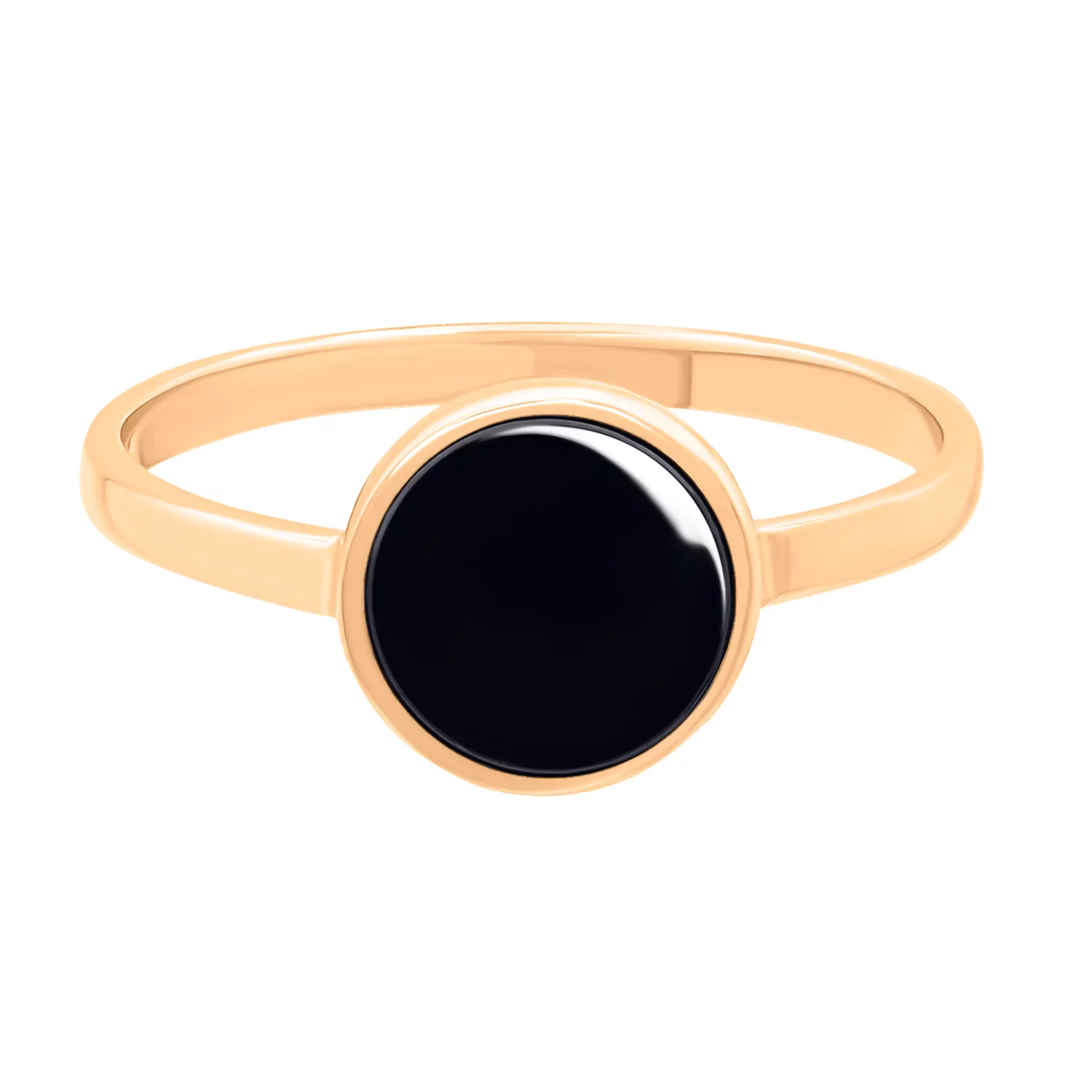 Перстень-печатка из красного золота с эмалью и дорожками из черных фианитов - 1874654