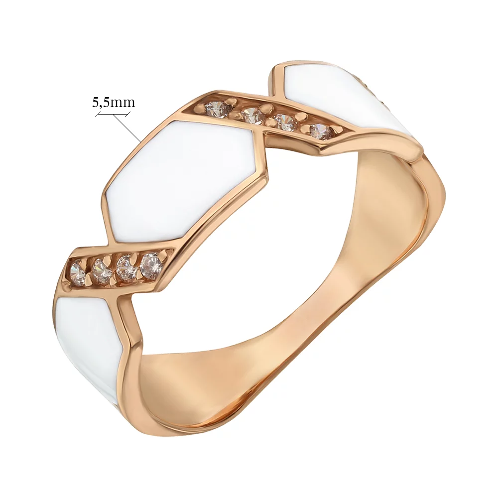 Кольцо из красного золота с эмалью и фианитом - 1435139