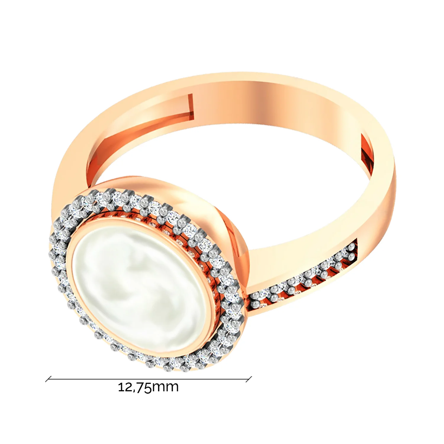 Перстень-печатка в комбинированном золоте с дорожкой из фианитов и эмалью - 1874594
