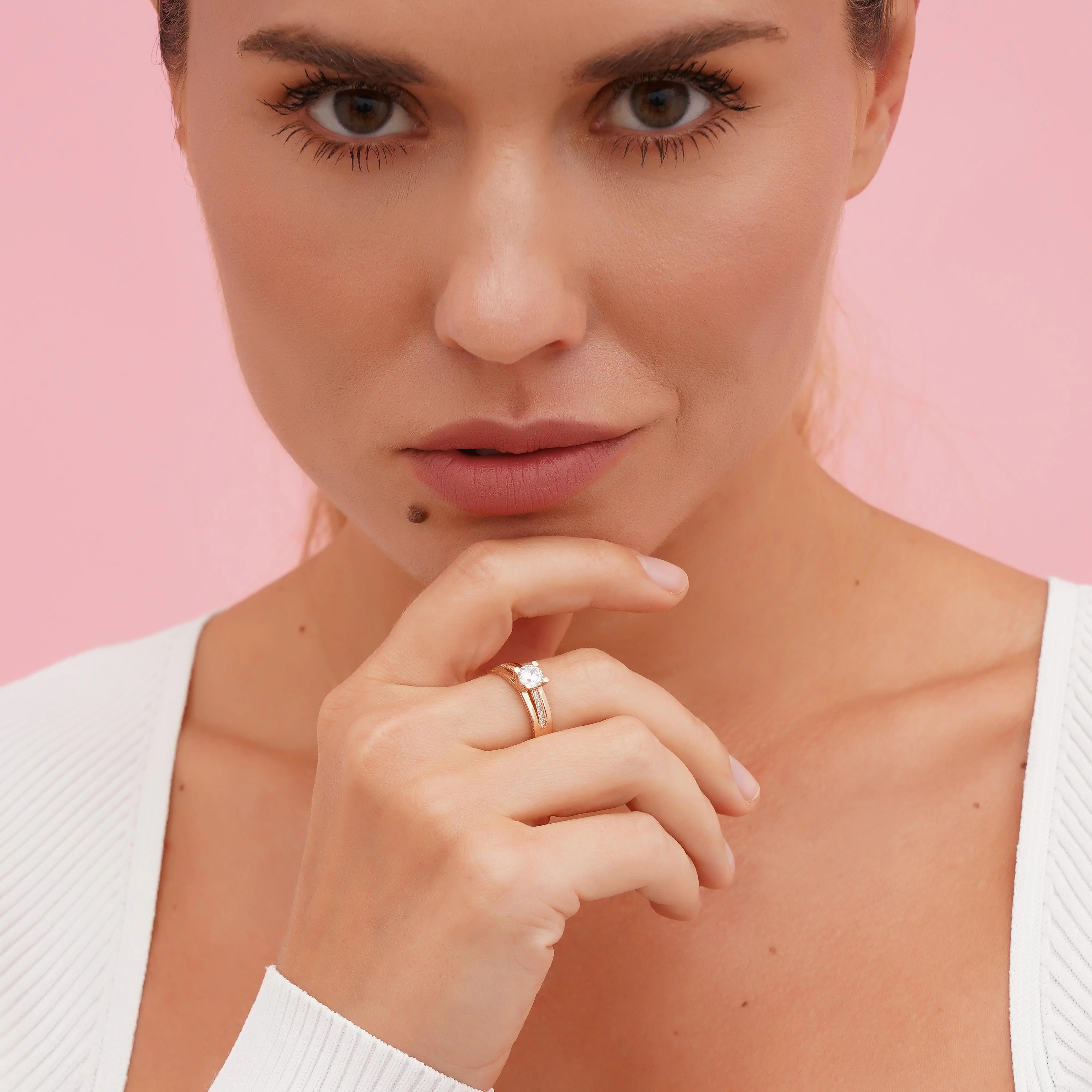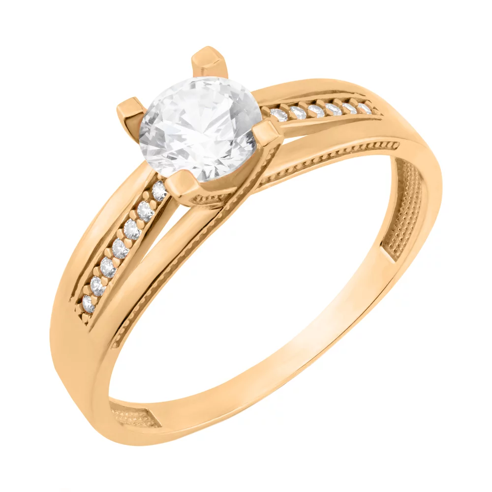 Кольцо из красного золота с дорожкой фианитов - 1745223