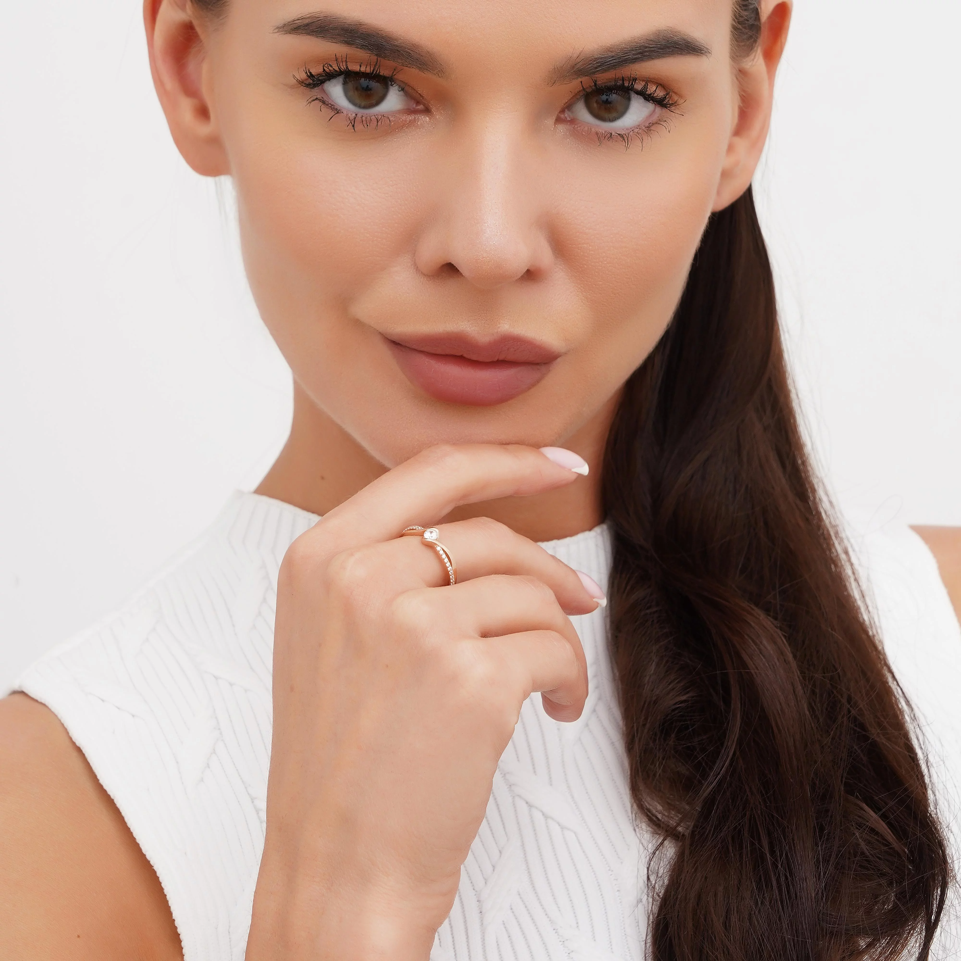 Кольцо из красного золота с фианитами - 1792118