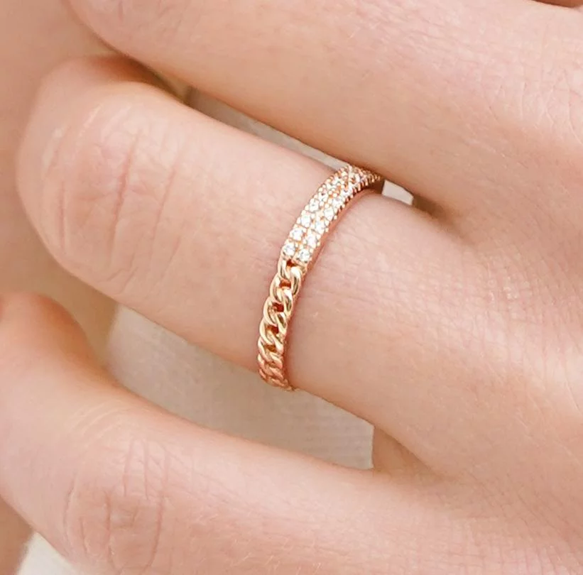 Кольцо из красного золота с фианитами "Цепь" - 1731835