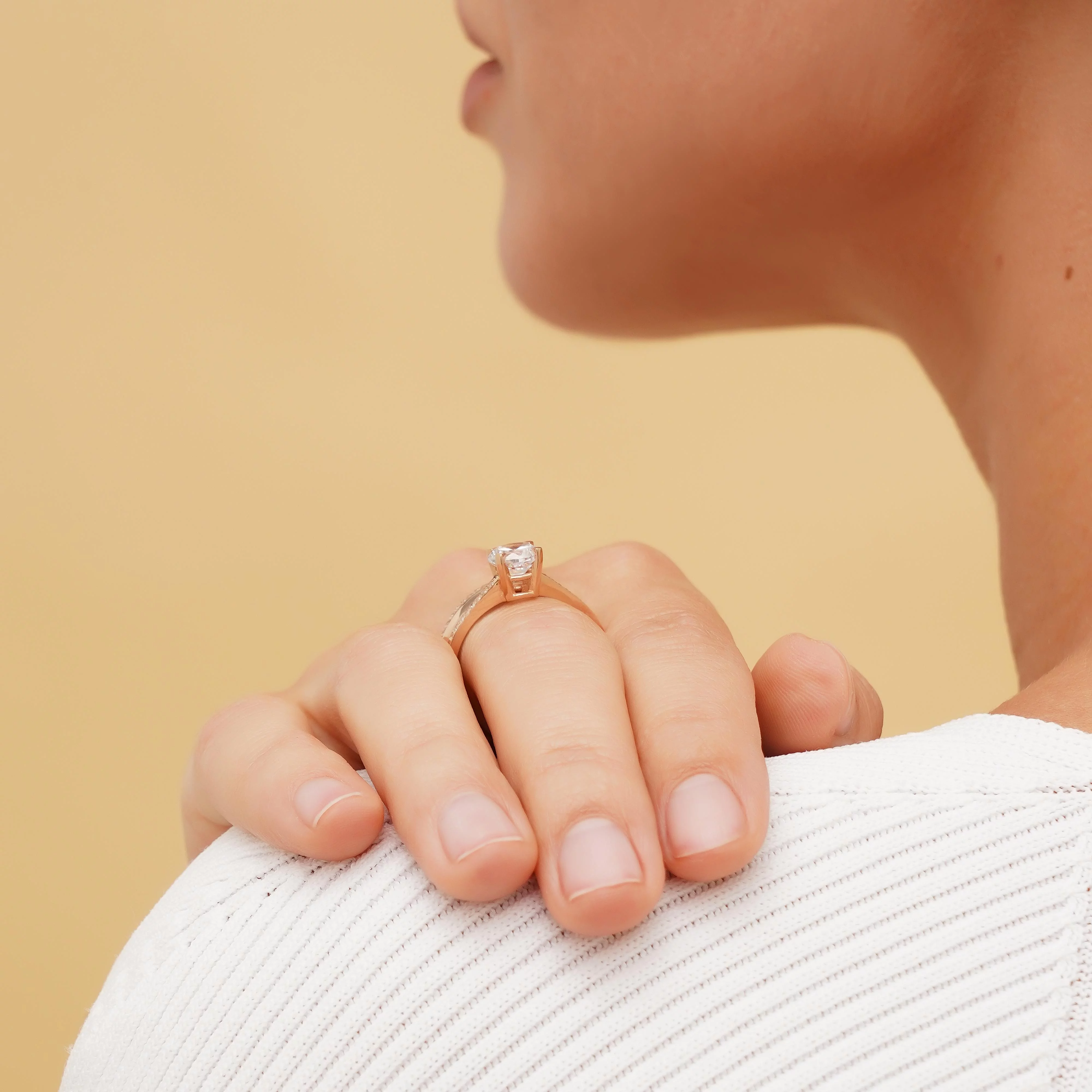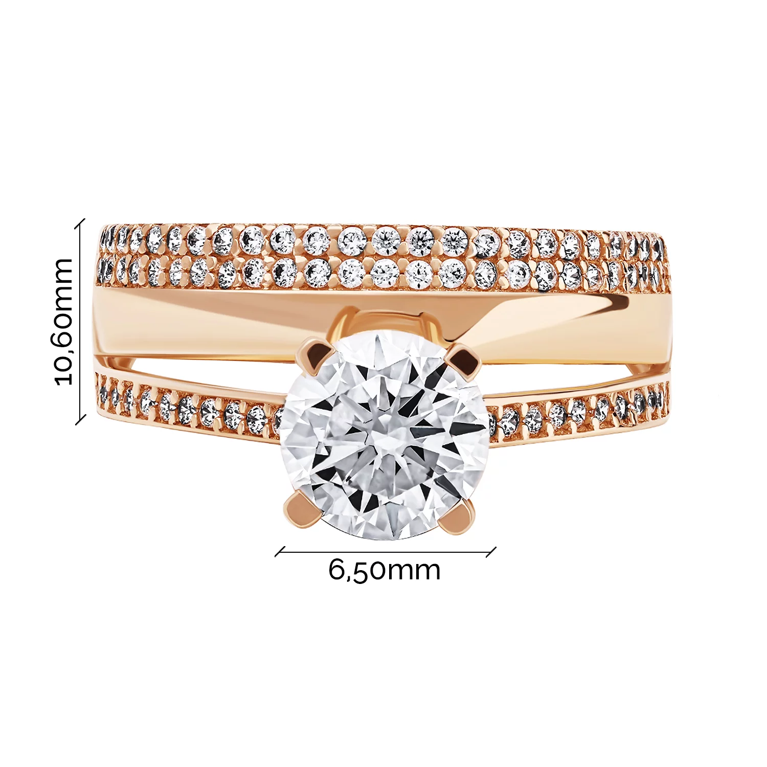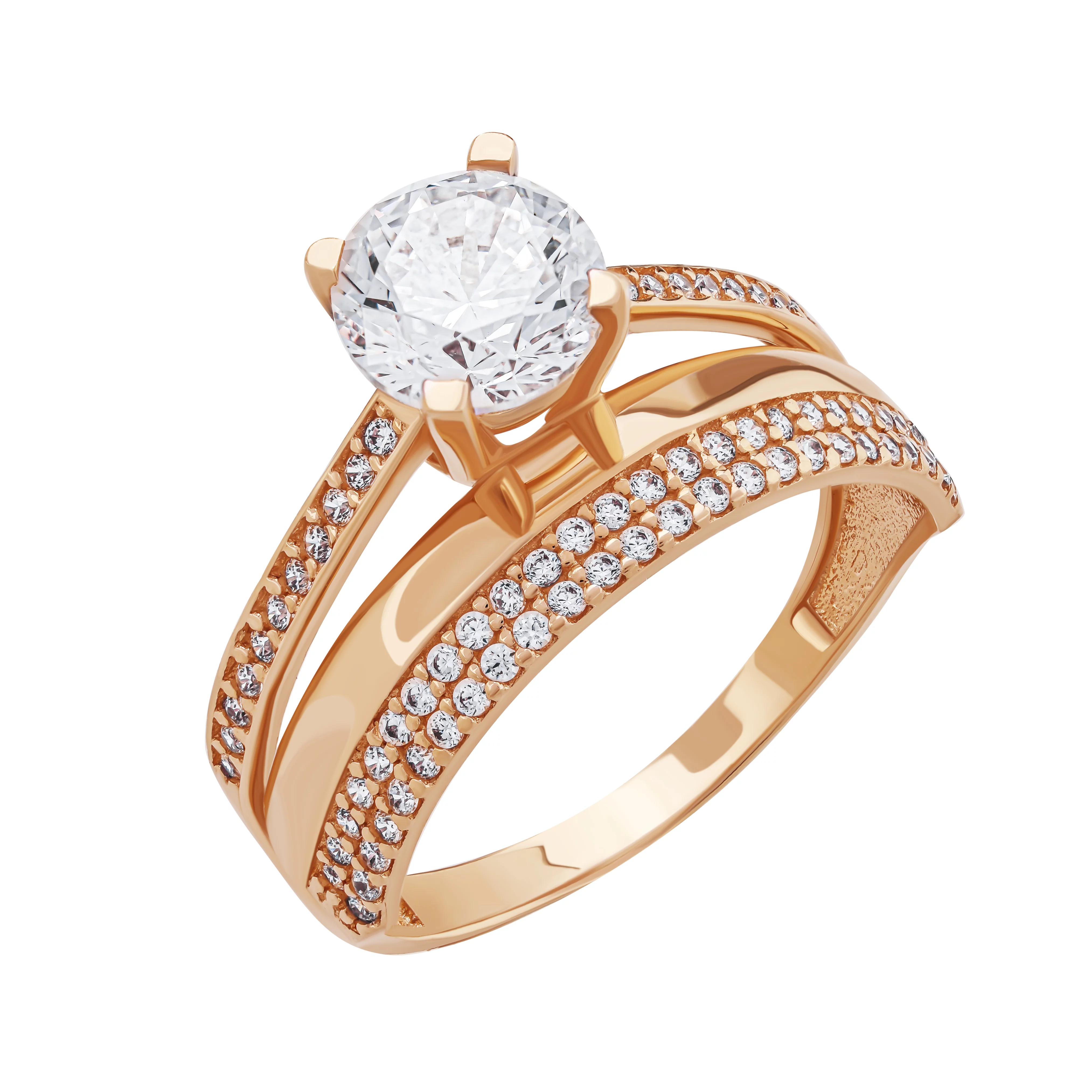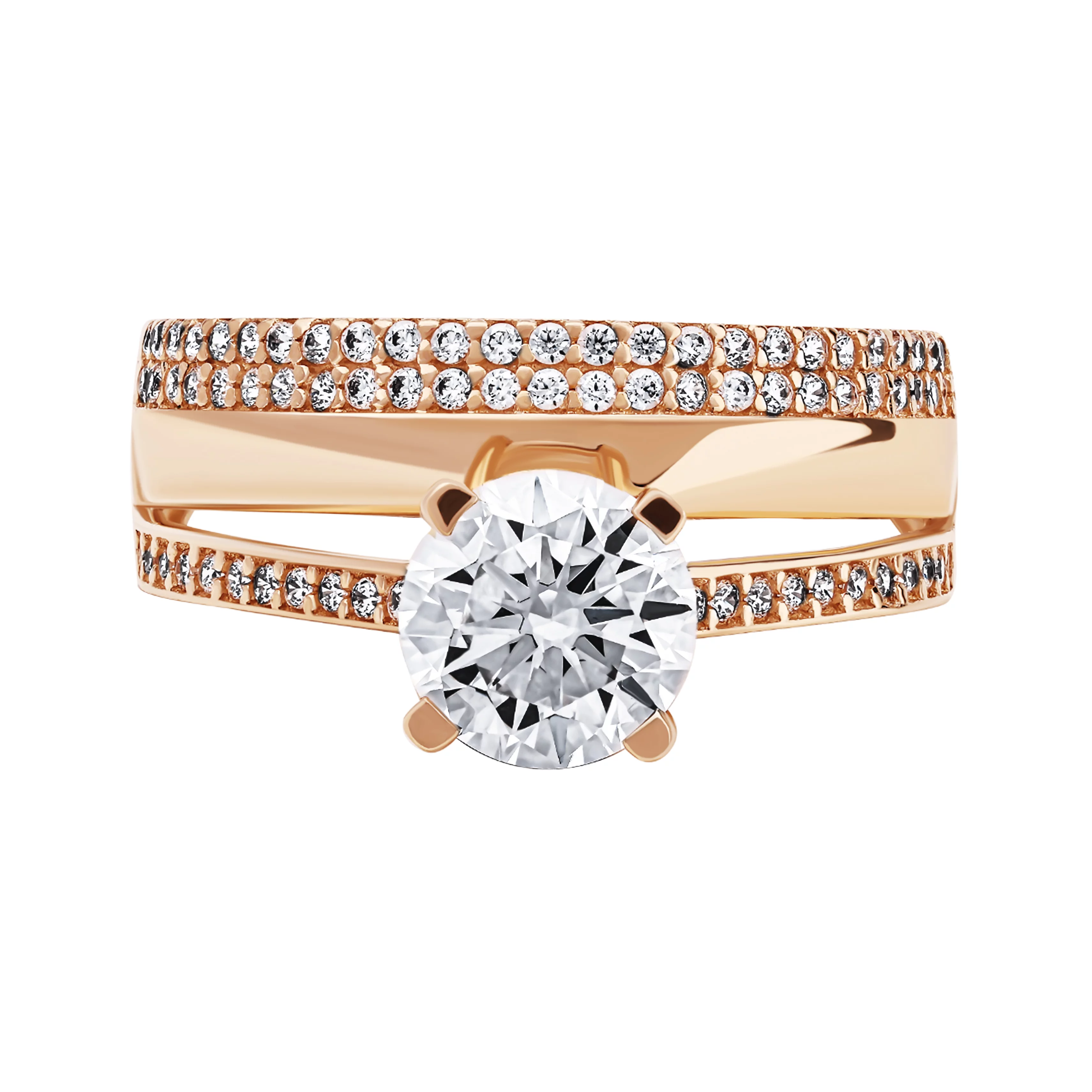 Двойное кольцо "Переплетение" с фианитами из красного золота - 1736141