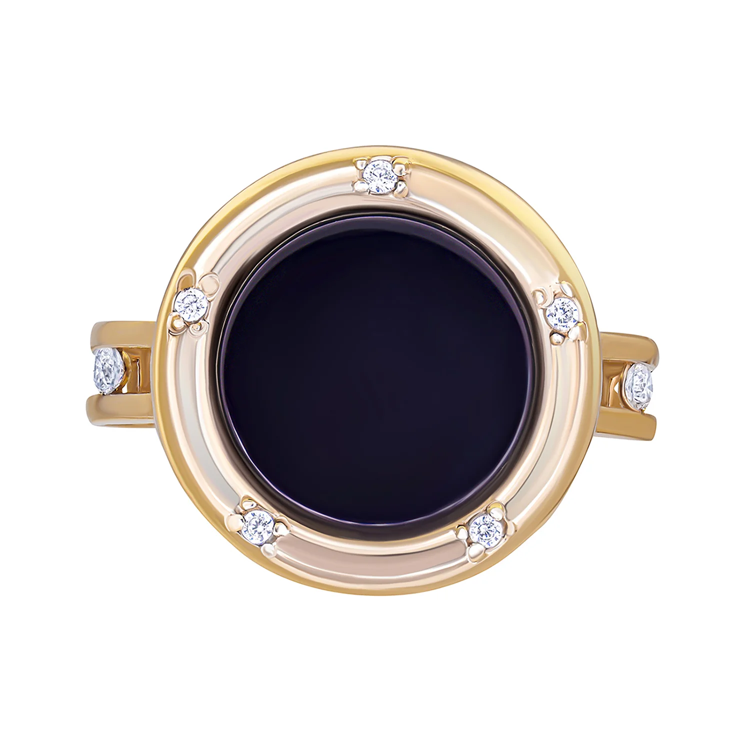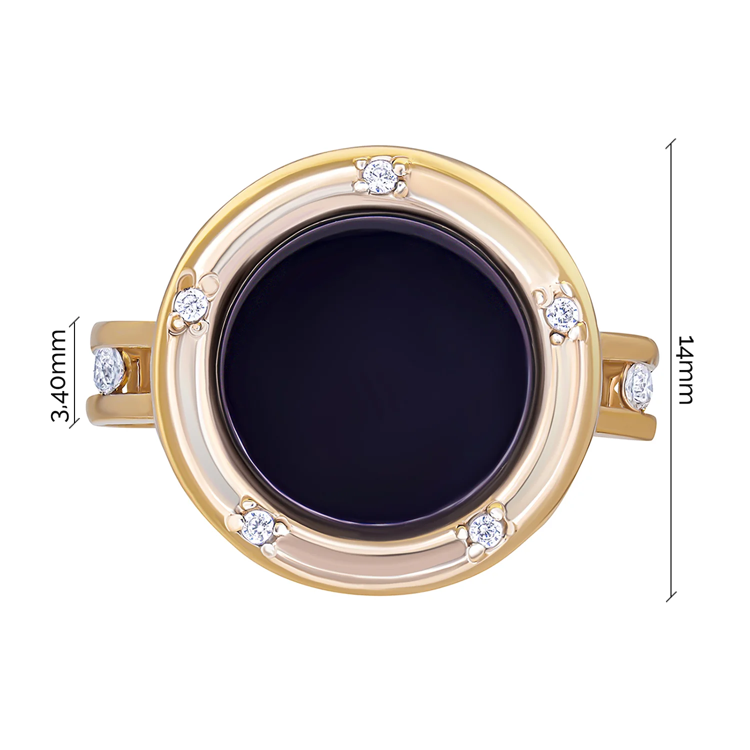Кольцо из красного золота с ониксом и фианитом - 829997