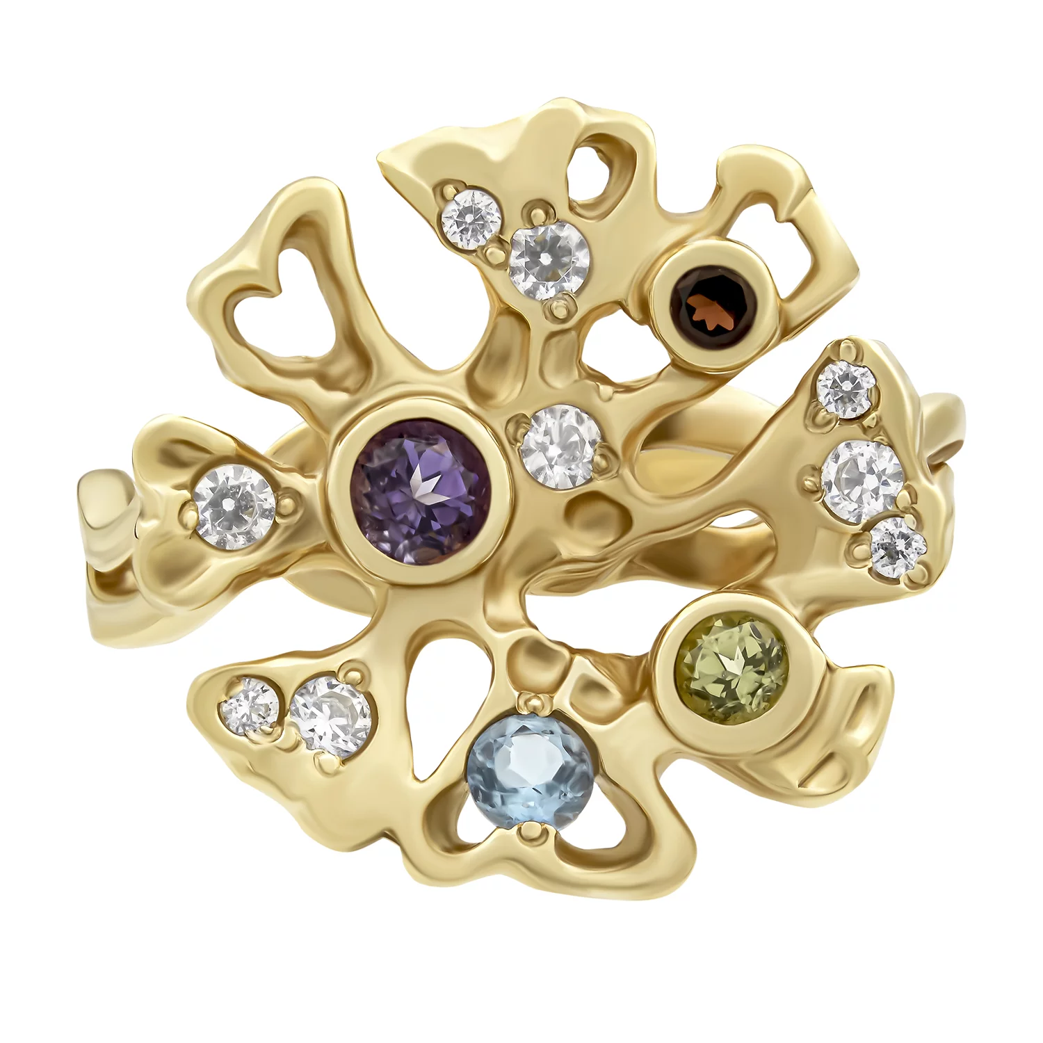 Кольцо из красного золота с топазом, аметистом, хризолитом и цирконием - 512187