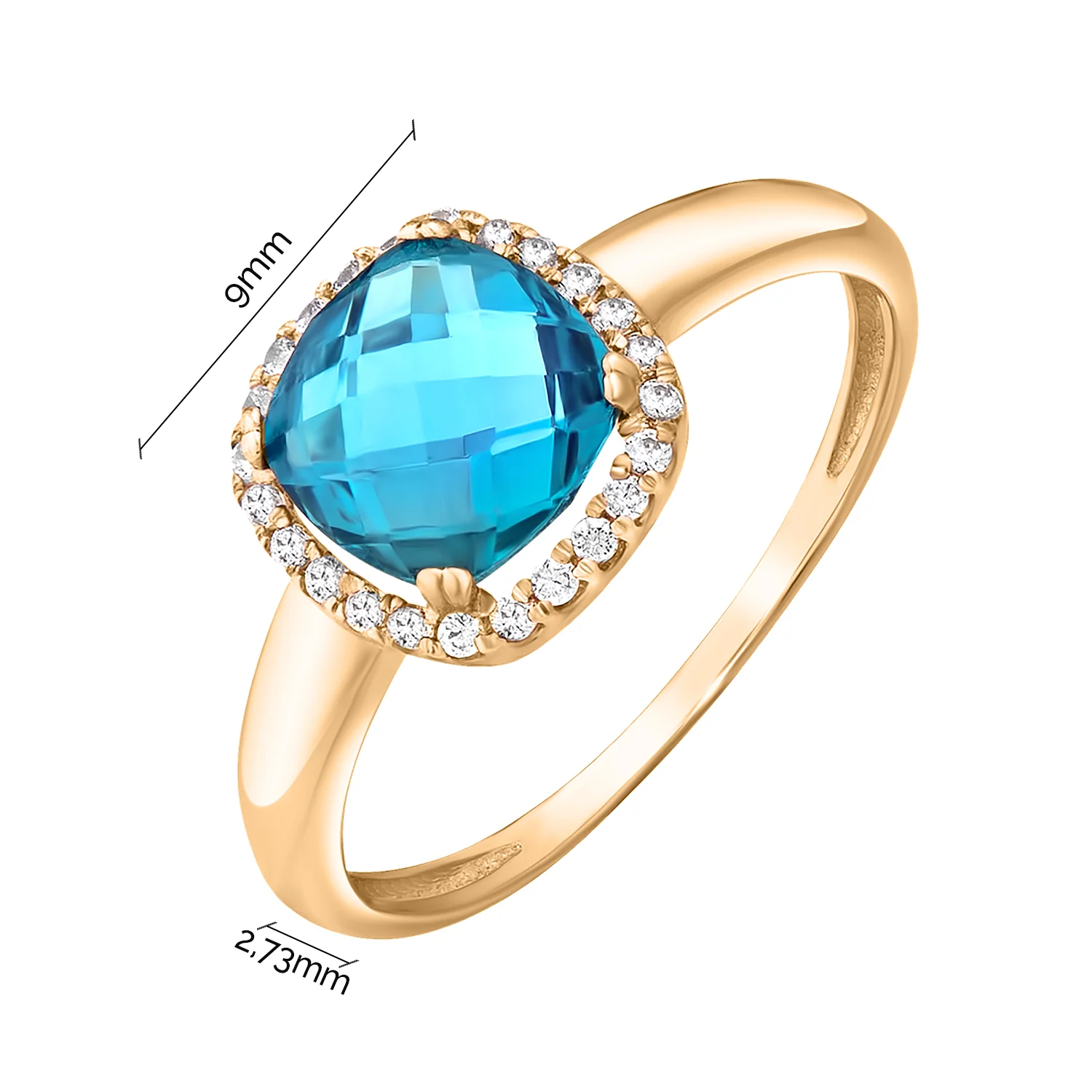 Стильное кольцо в геометричном стиле в красном золоте с топазом и фианитами - 1939740