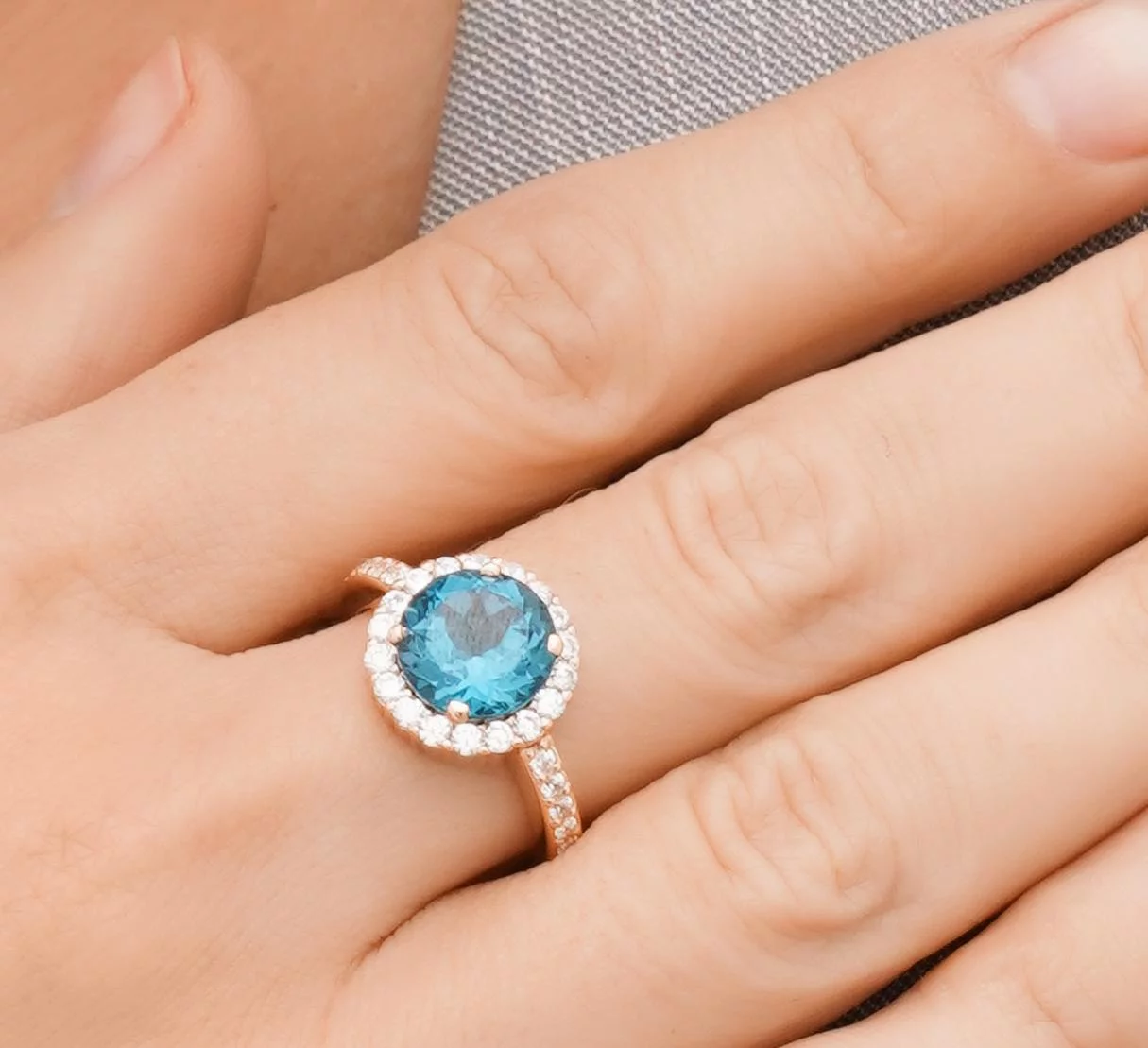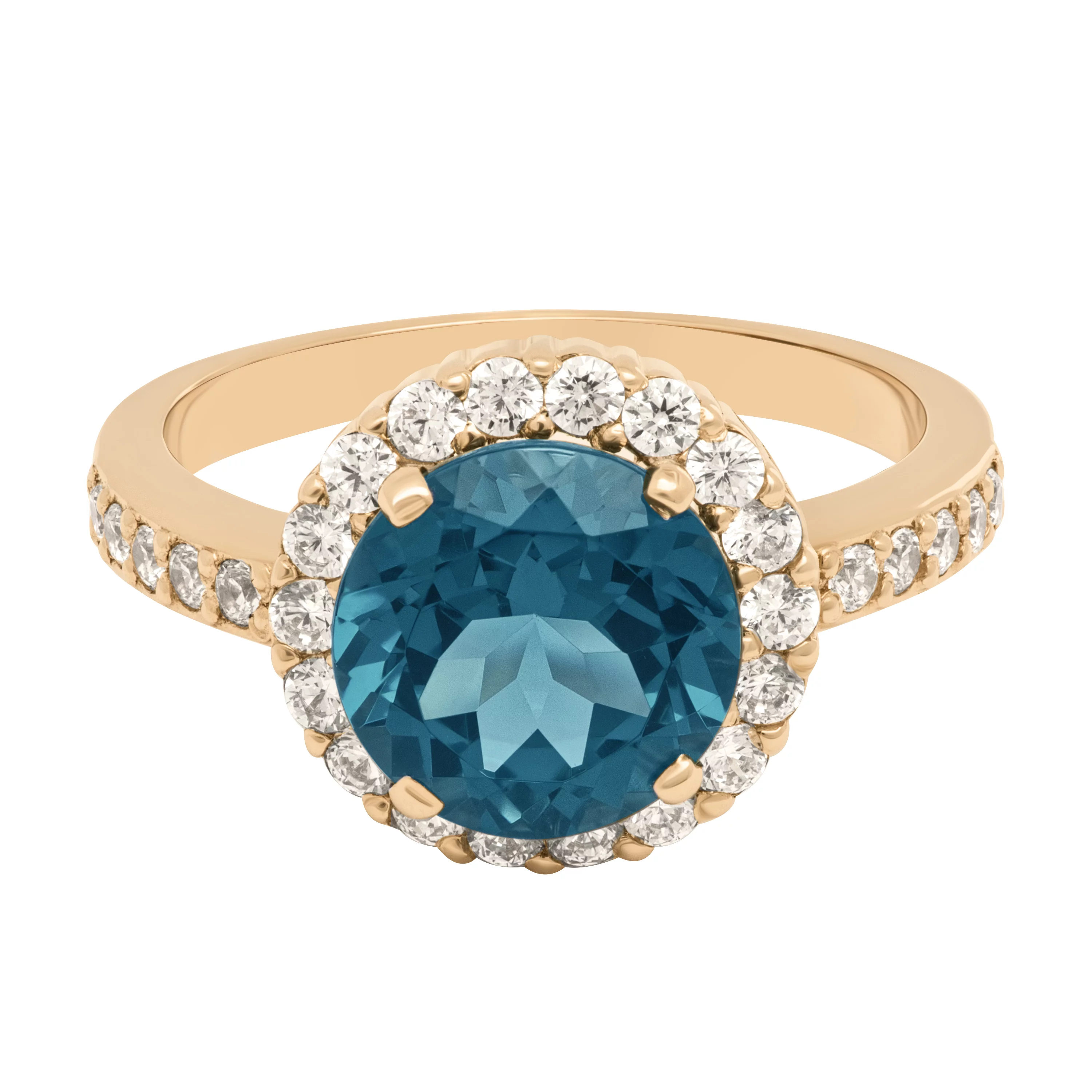 Кольцо из красного золота с топазом лондон и фианитами - 1614903