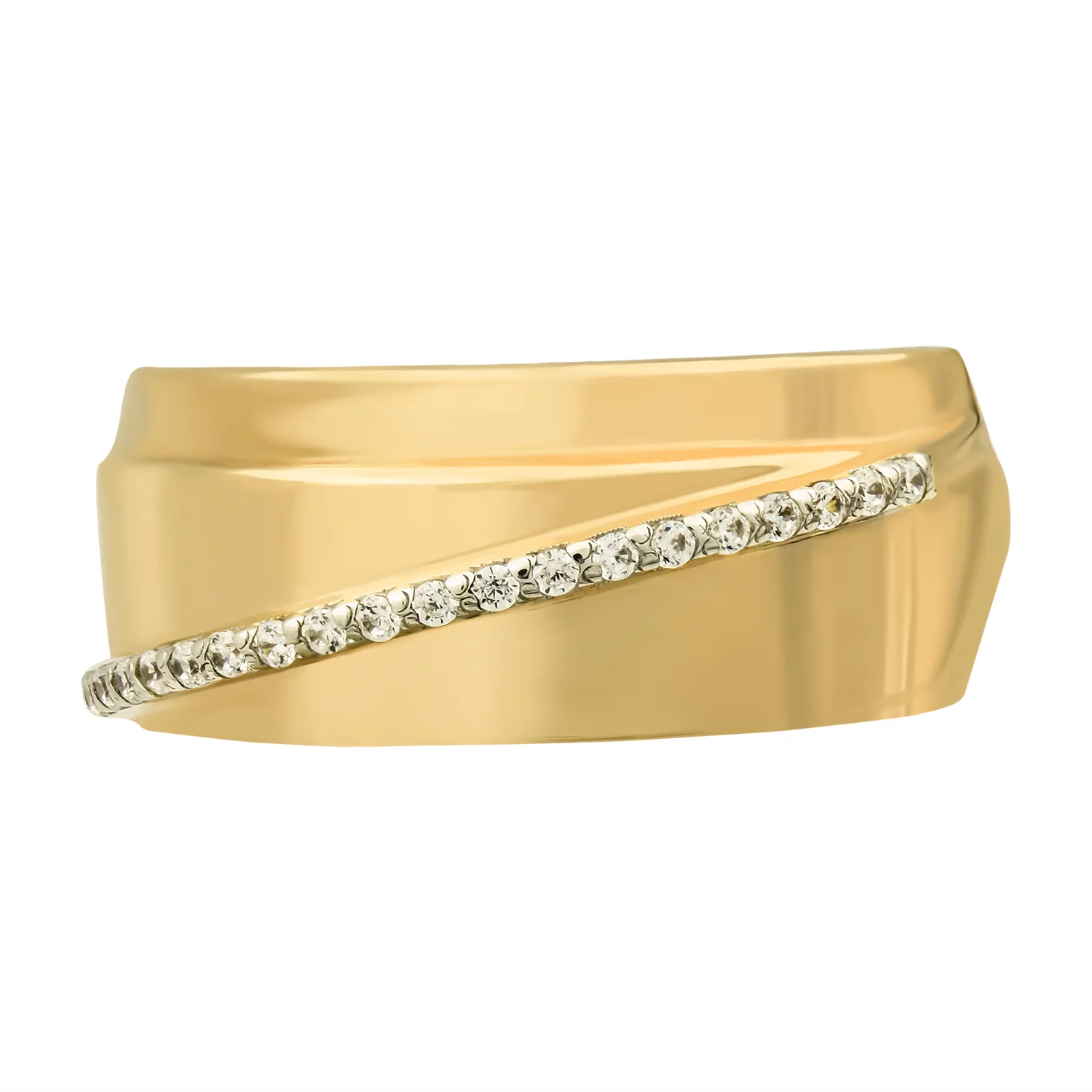 Двойное кольцо "Переплетение" с фианитами из красного золота - 1736141