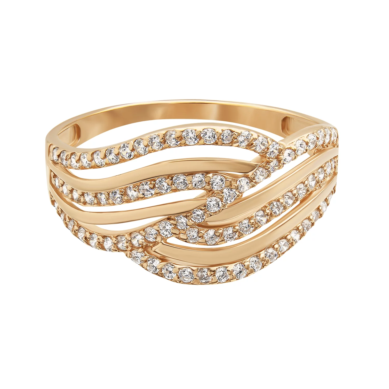 Кольцо из красного золота с фианитами "Переплетение" - 870391