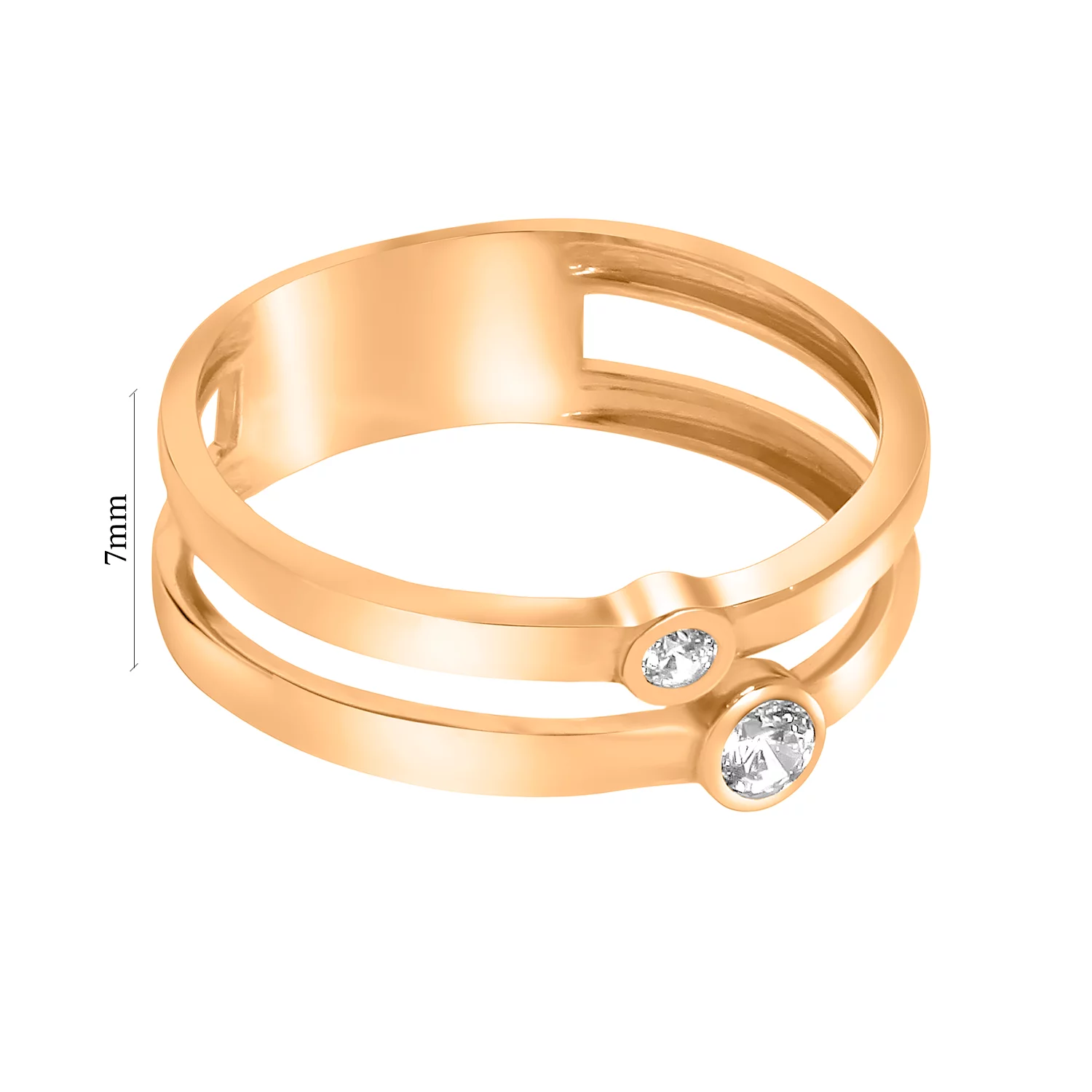 Двойное кольцо "Переплетение" с фианитами из красного золота - 1736141