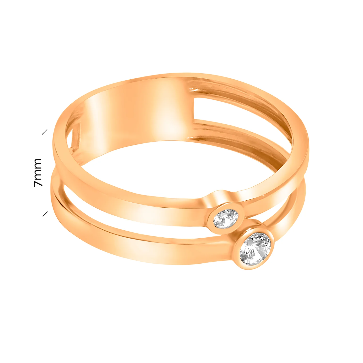 Двойное кольцо "Переплетение" с фианитами из красного золота - 1736141