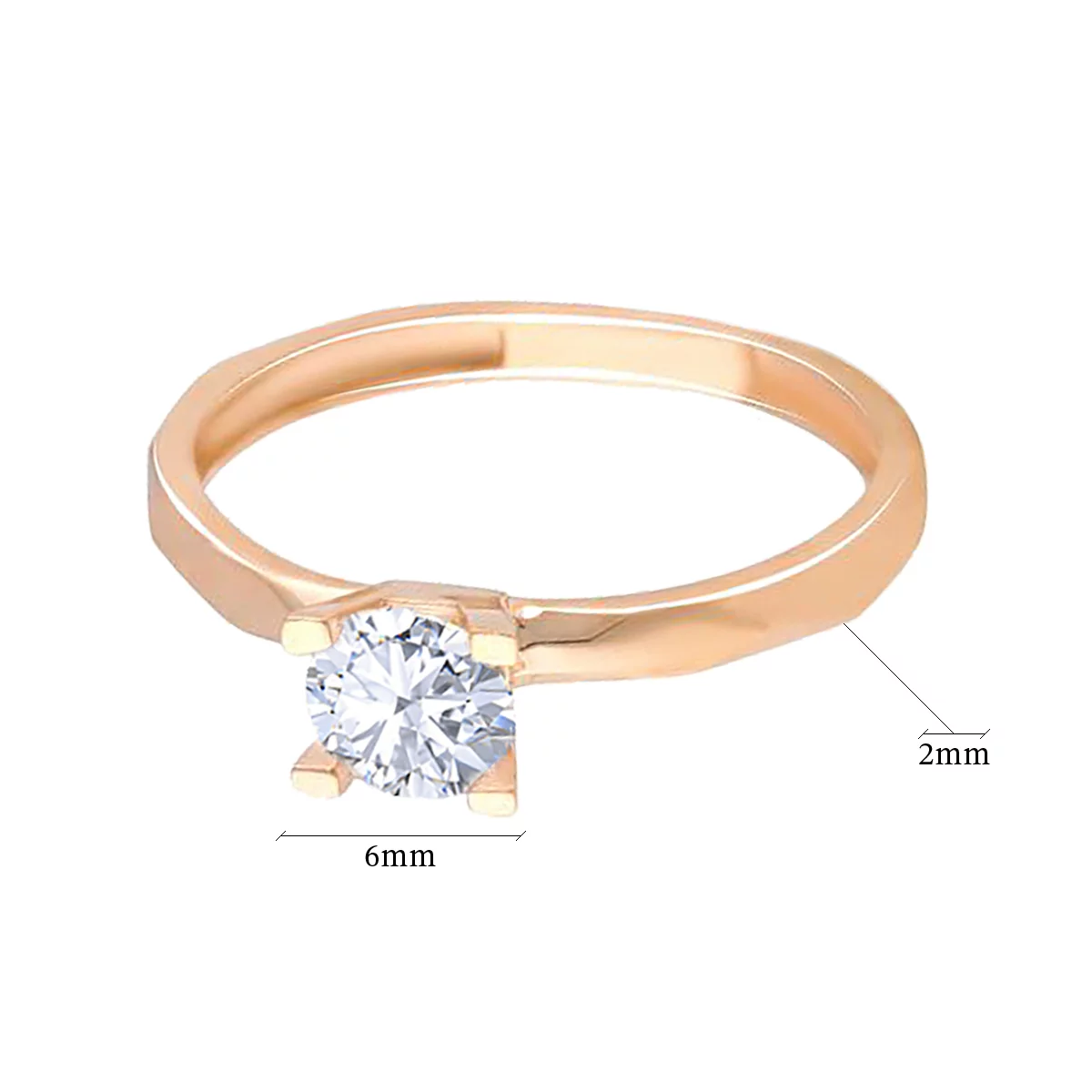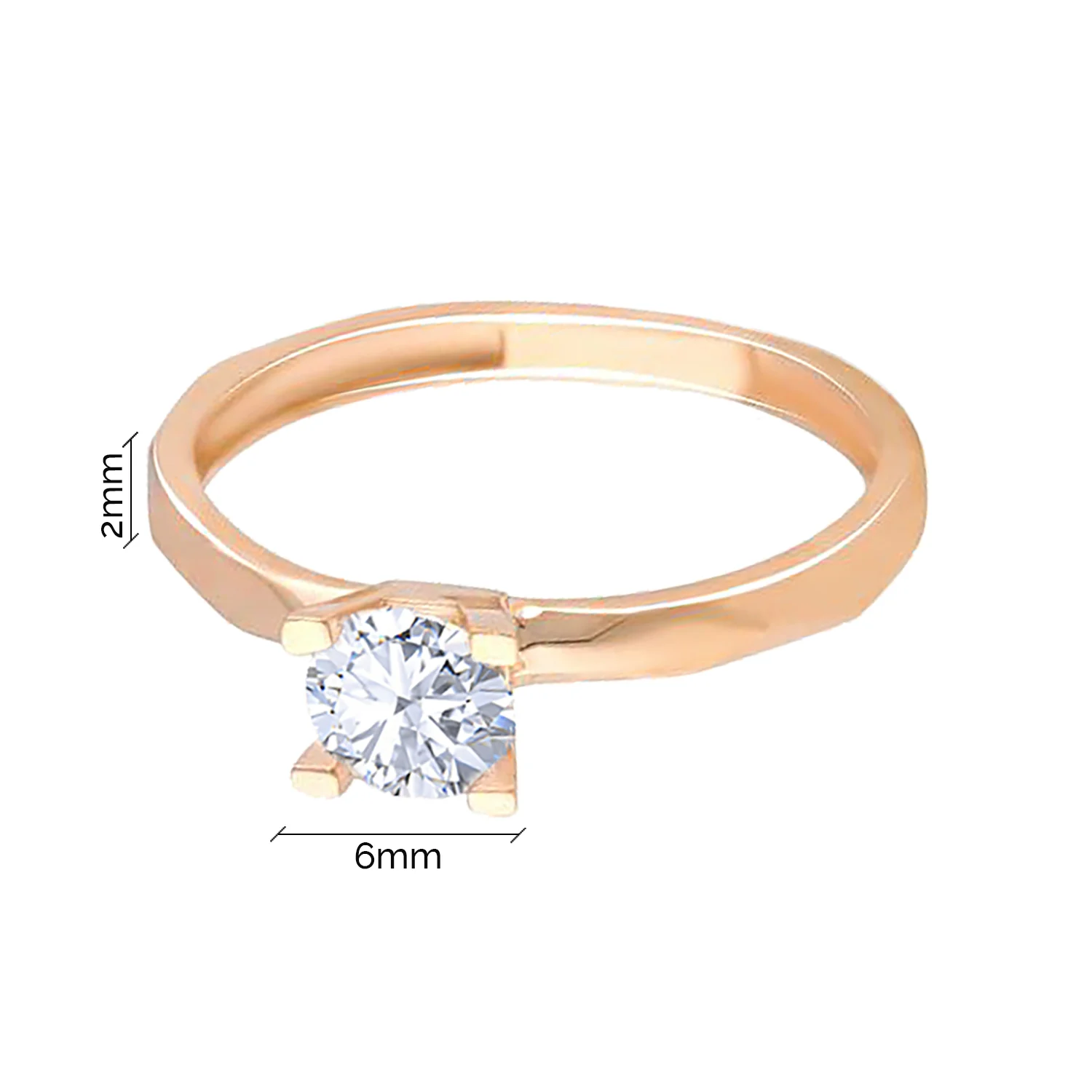 Кольцо из красного золота для помолвки отличается утонченностью форм. Дизайн с алмазными гранями, нанесенными под разными углами, придает оригинальность традиционному украшению. Инкрустация цирконием в крапановой закрепке обеспечивает элегантное сияние, создавая легкий объем. Украшение будет красиво смотреться на любой женской руке благодаря универсальности. Сплав на основе 58,5% чистого золота, а также 41,5% меди и серебра выделяется приятным мягким оттенком. Такой состав 585 пробы металла гарантирует прочность и сохранение привлекательного внешнего вида.