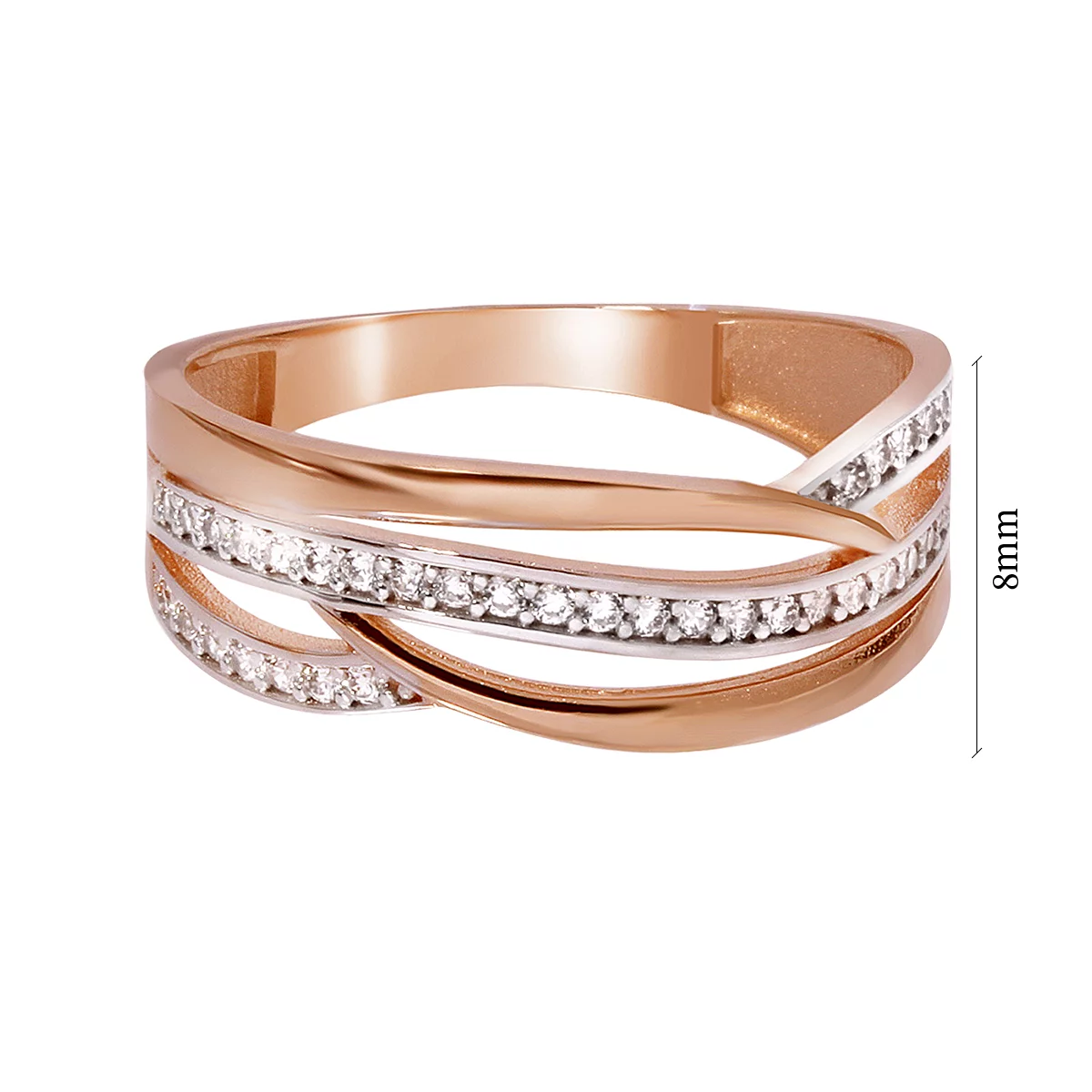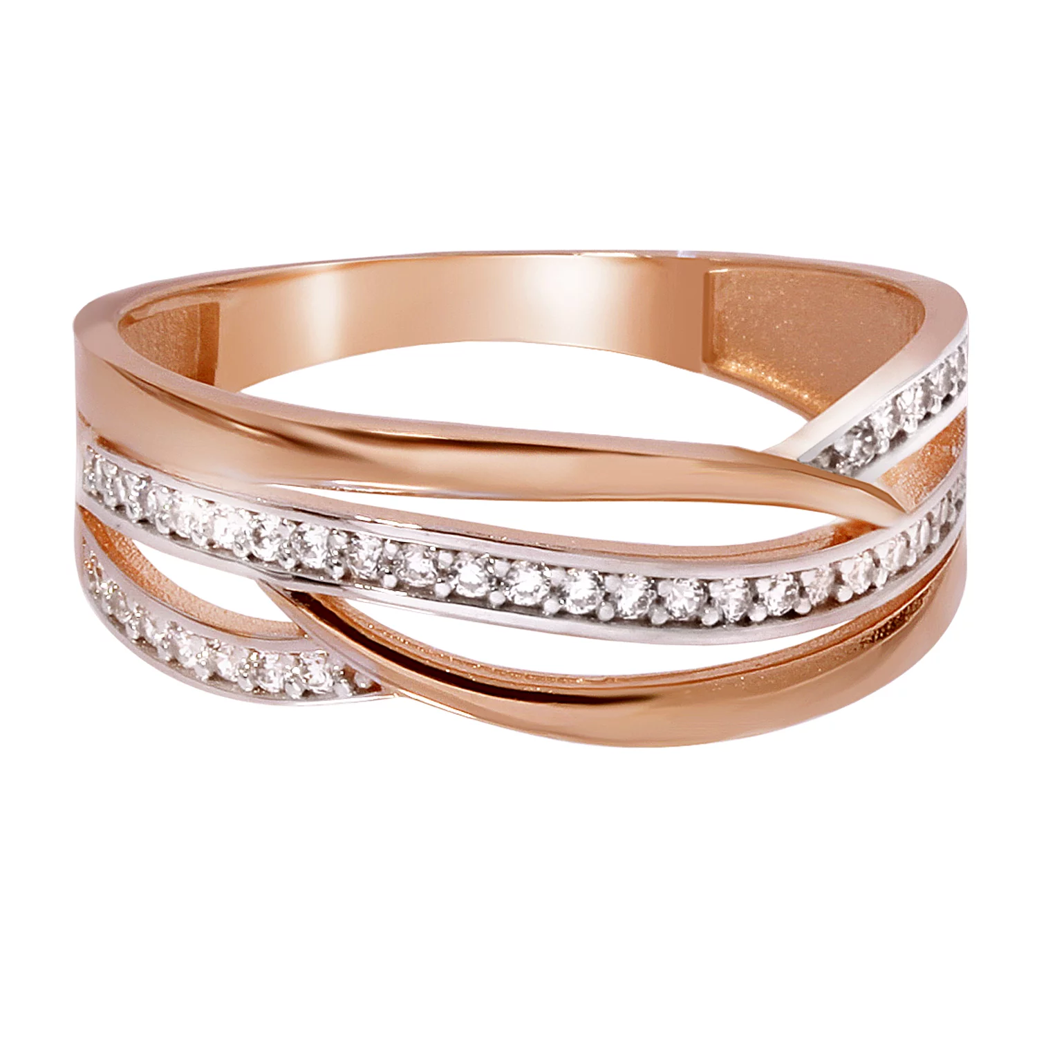 Кольцо "Переплетение" из комбинированного золота с фианитами - 969251