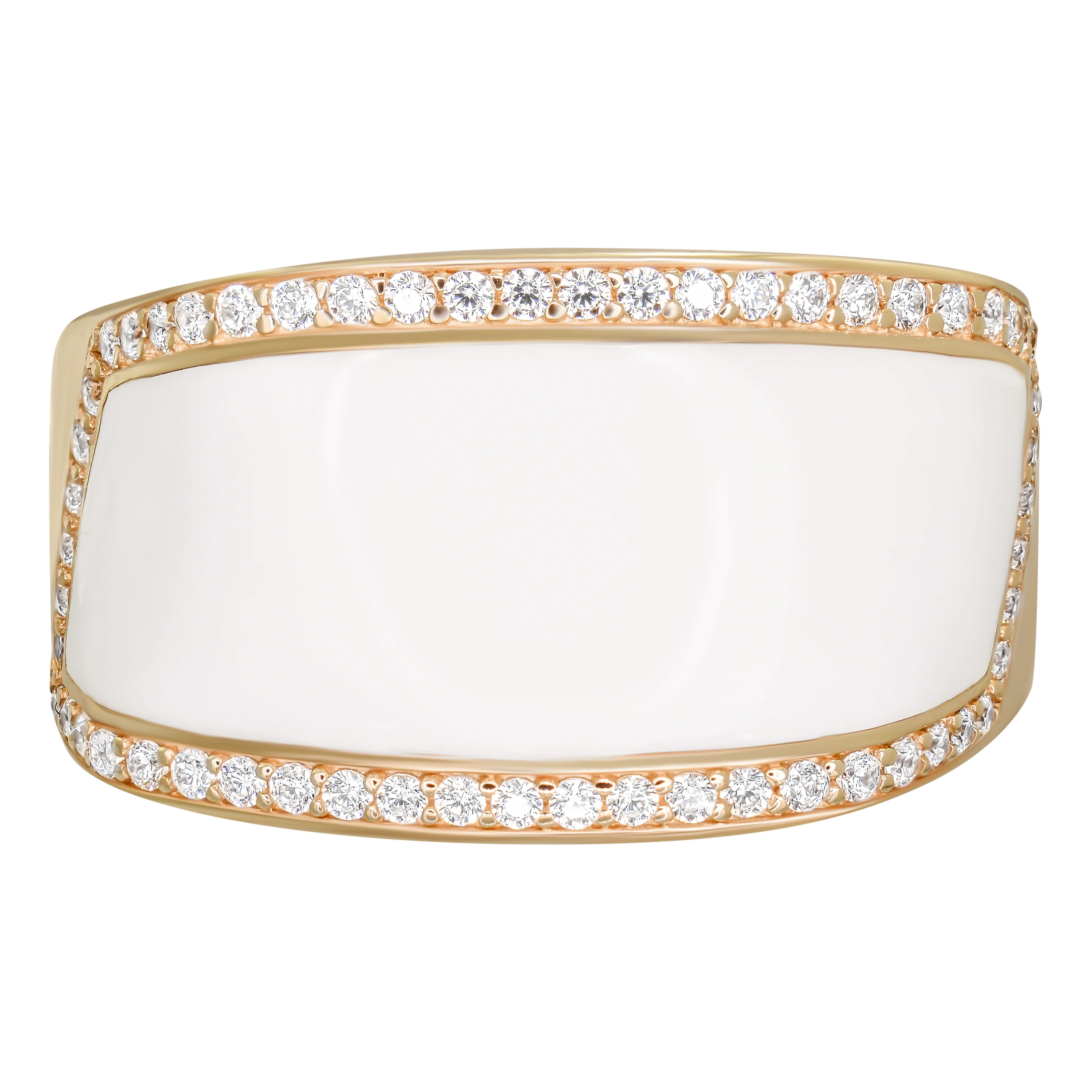 Перстень-печатка в комбинированном золоте с дорожкой из фианитов и эмалью - 1874594