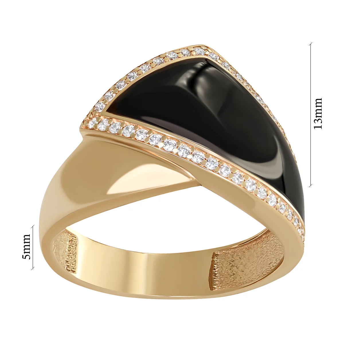 Кольцо из красного золота с фианитом и эмалью - 965790