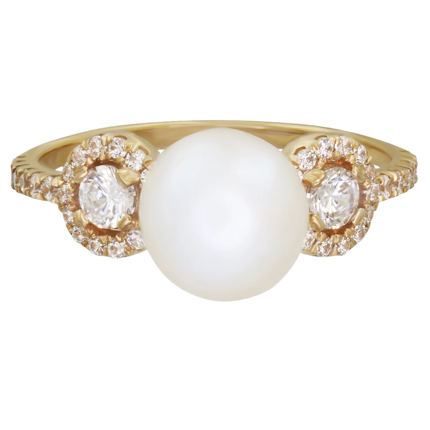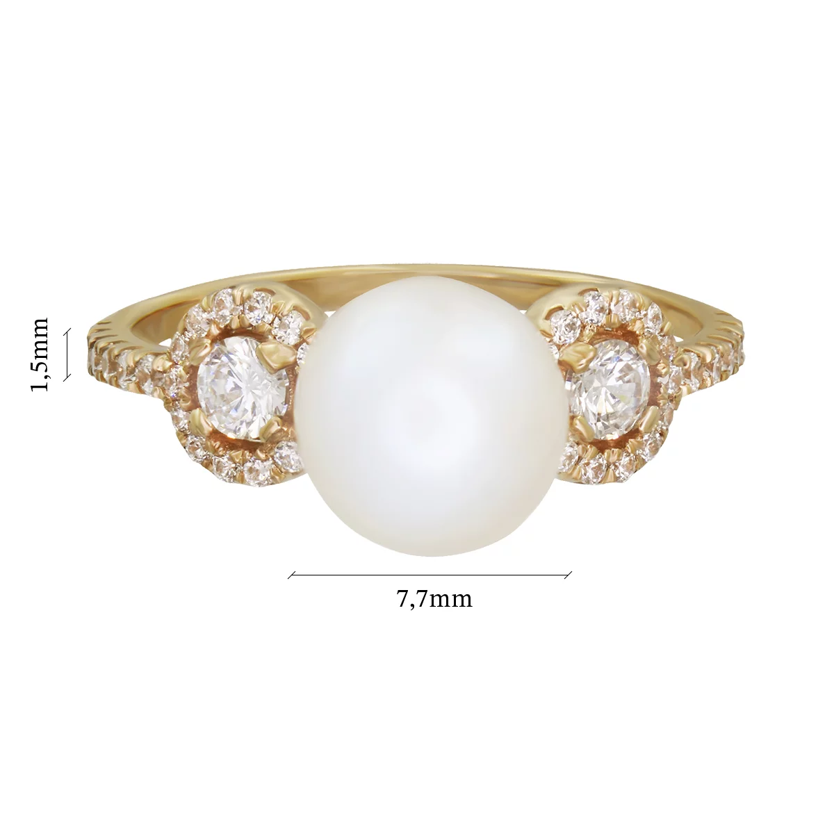 Кольцо из красного золота с фианитом и жемчугом - 902115