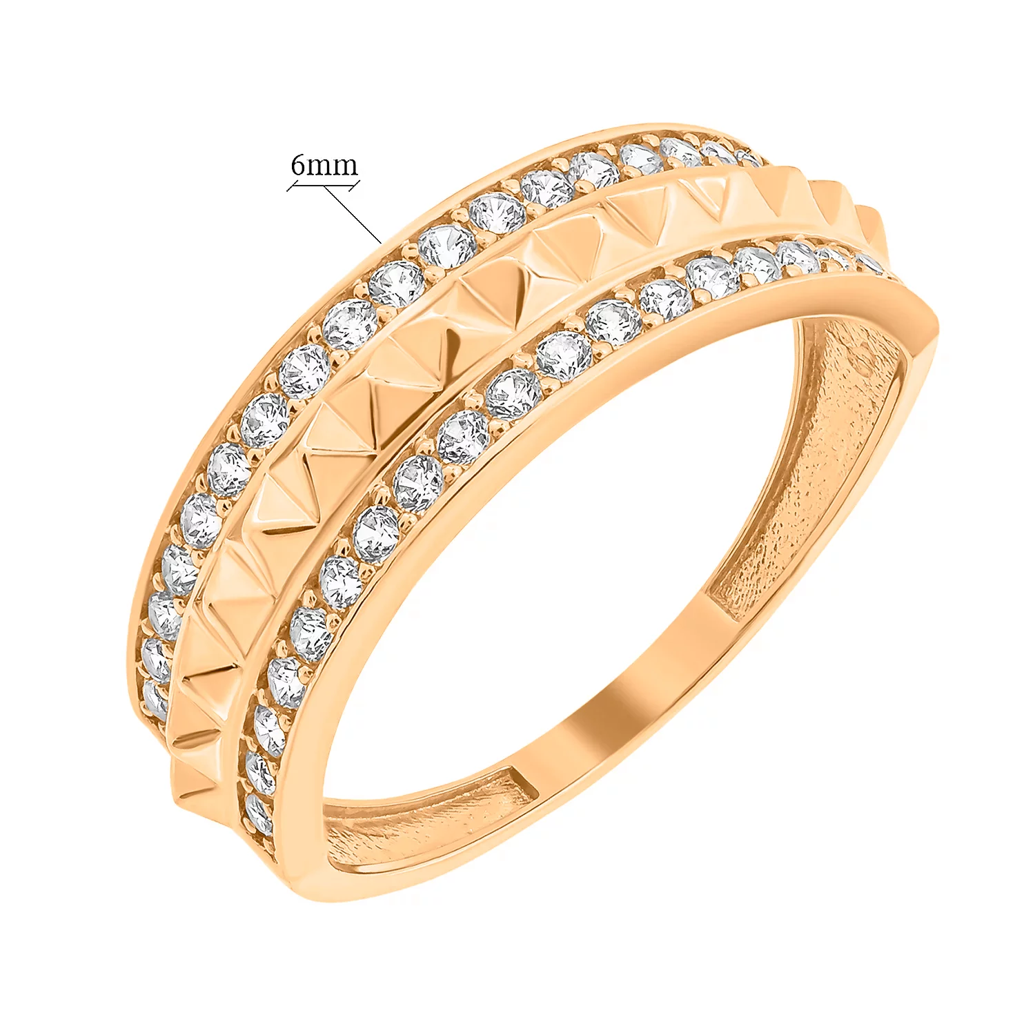 Кольцо из красного золота с фианитом "Пирамида" - 1455527