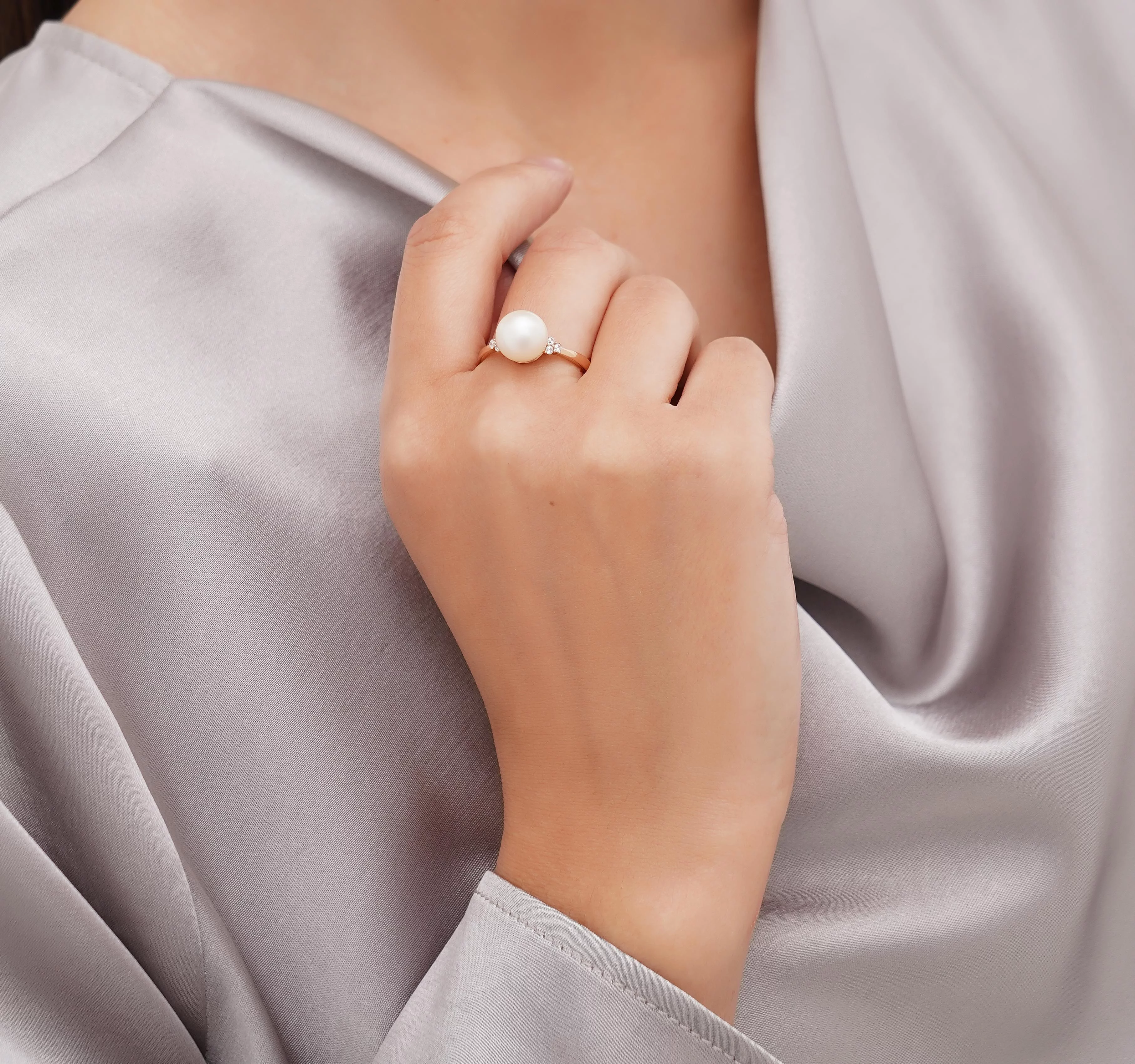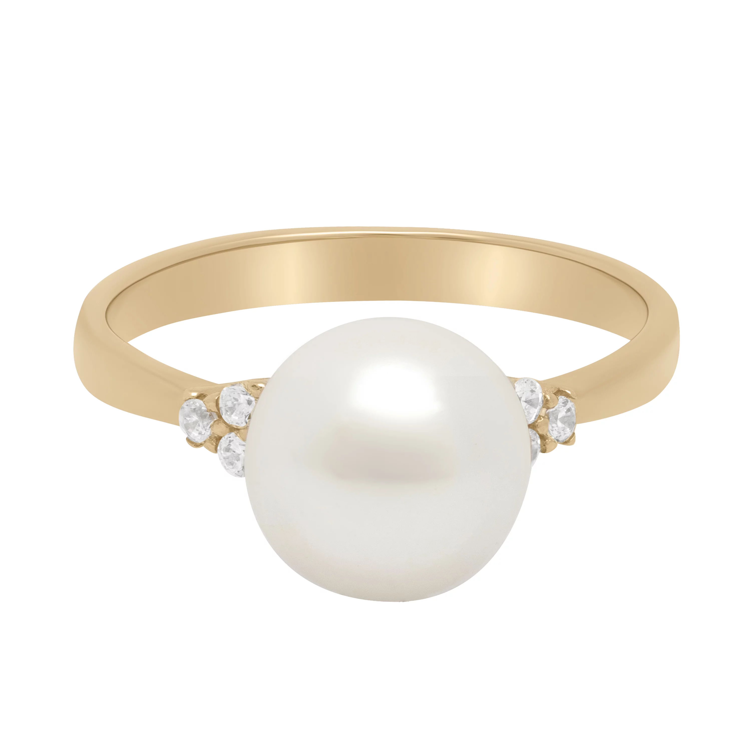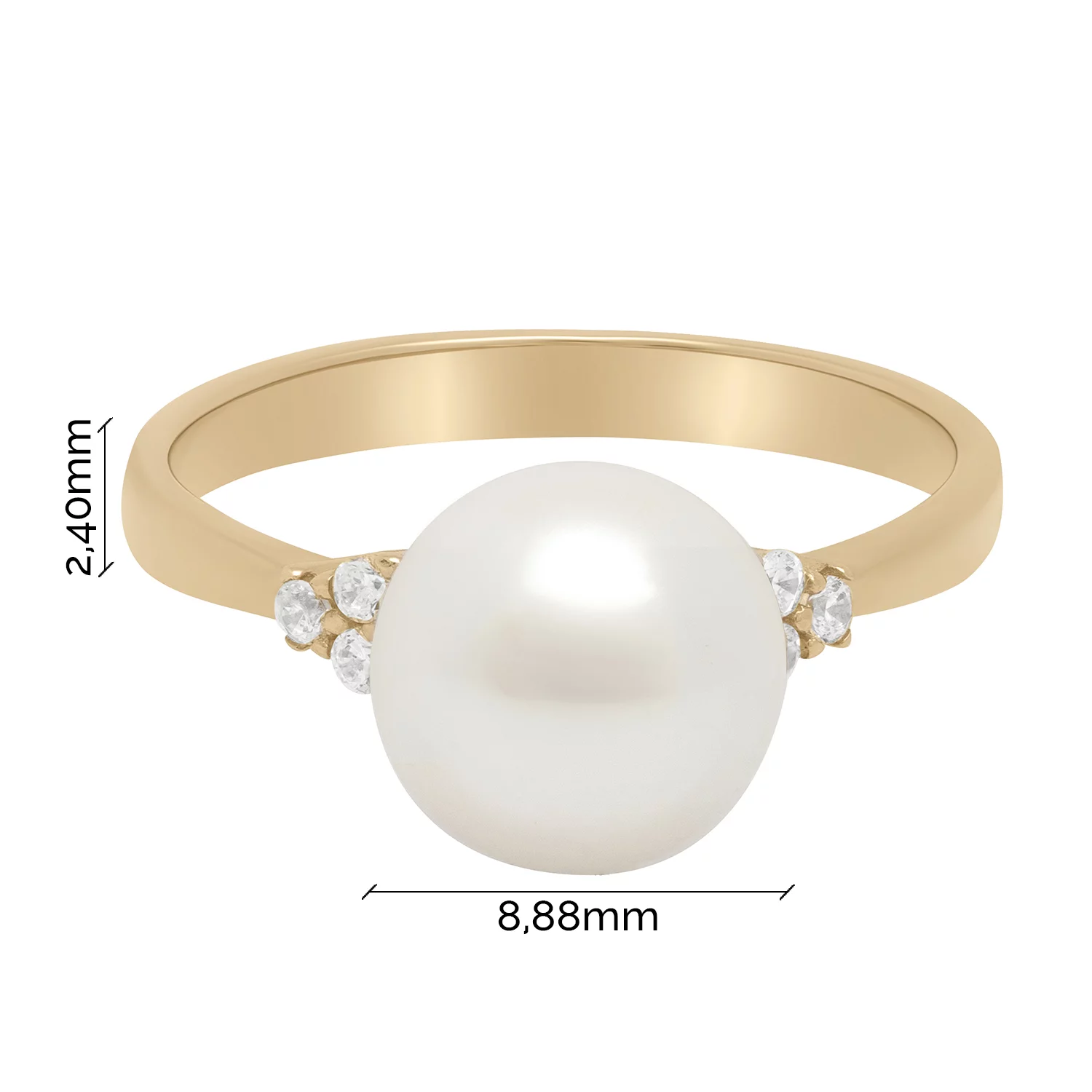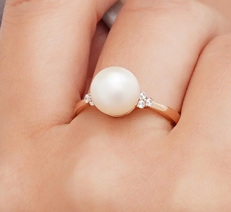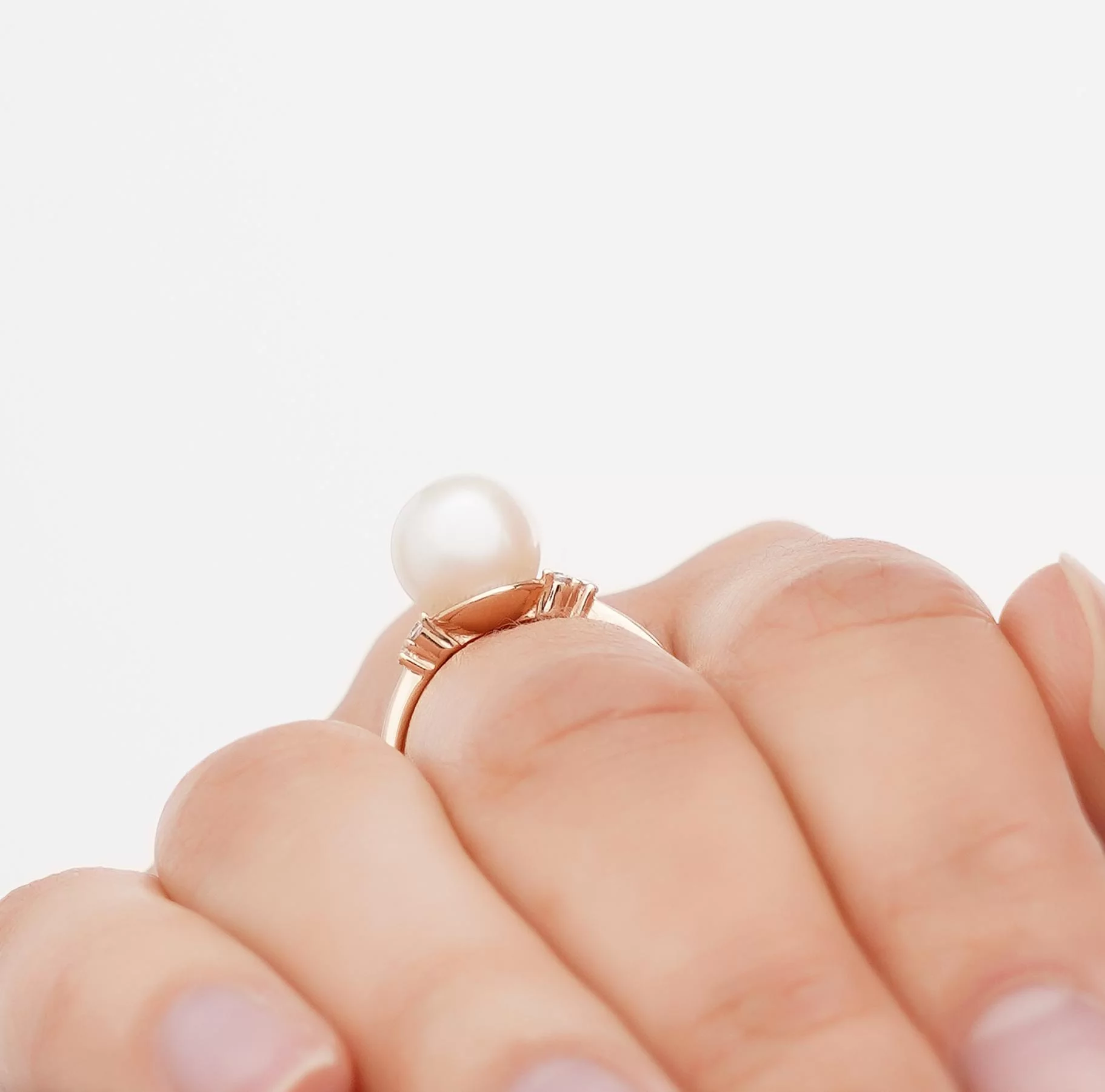 Стильное кольцо "Листок" в красном золоте с жемчужиной и фианитами - 1955339