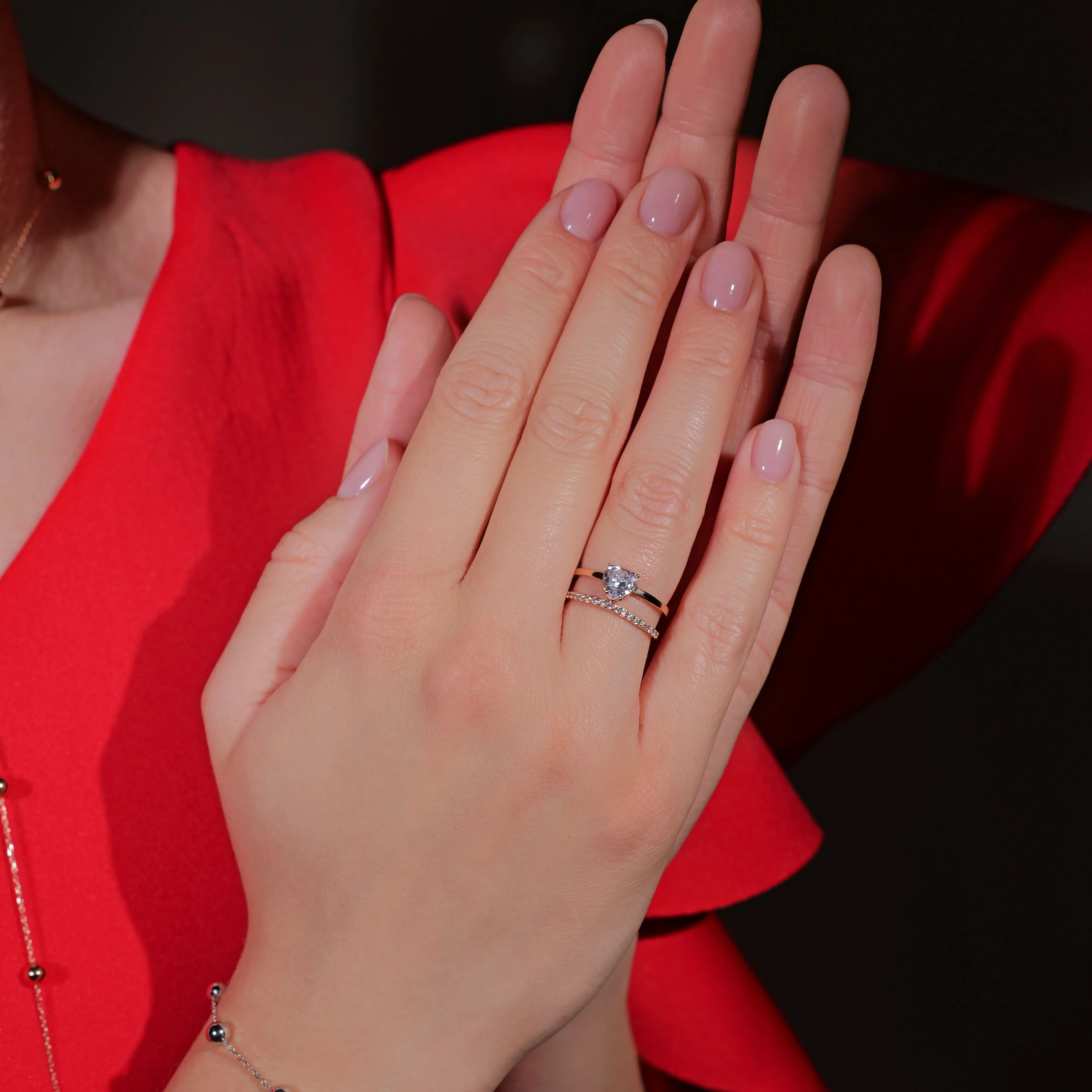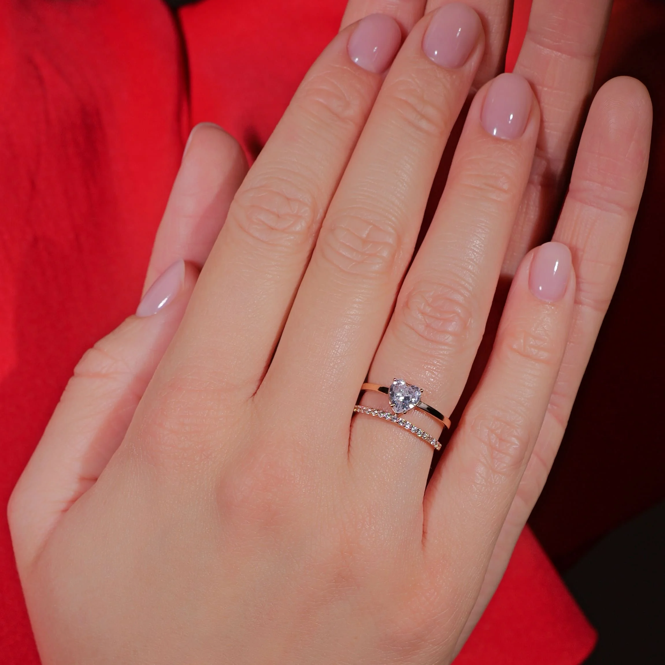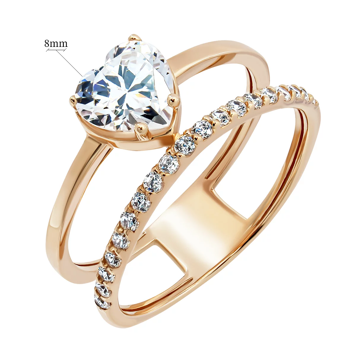 Кольцо двойное из красного золота "Сердце" с фианитом - 1345757